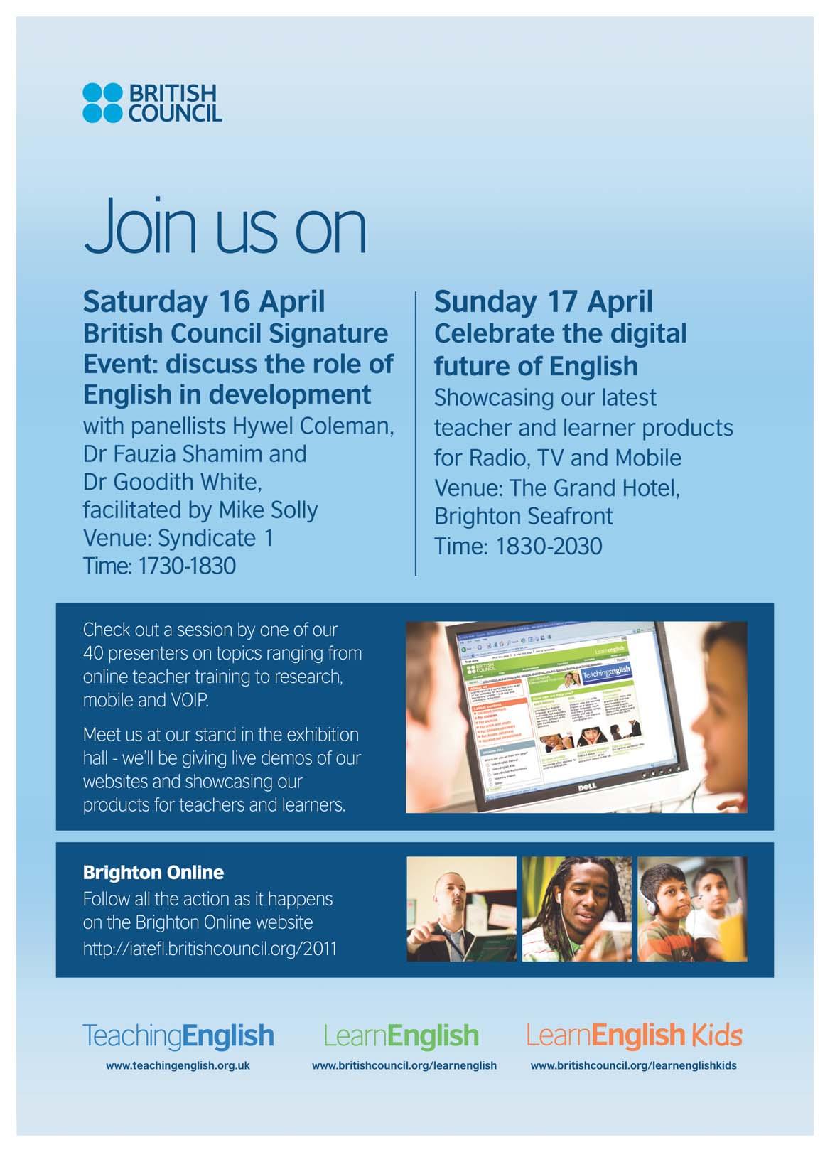 Abig thank youis also due totheBritish Council fortheir mostgenerous support ofBrighton Online, makingit possible for manythousandsofpeoplewhoare unableto attend inperson to participate remotely.