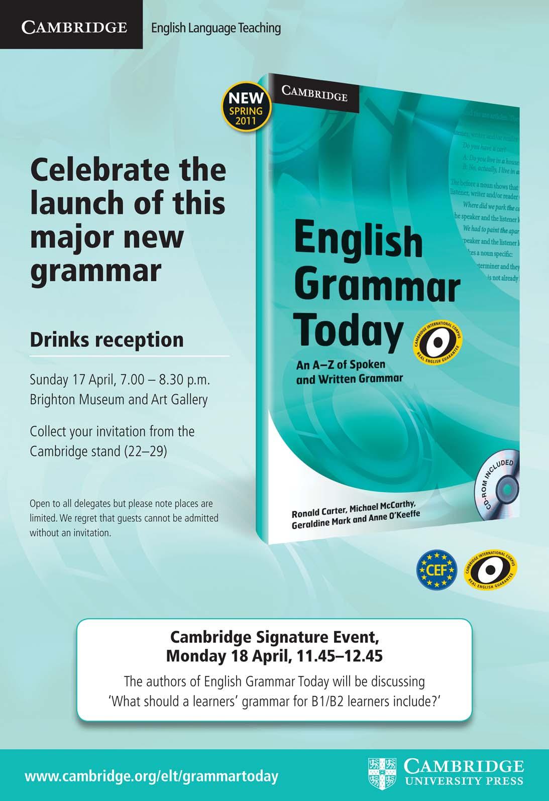 The event issupportedby Garnet Education, Cambridge ESOL, CUP, Macmillan ELT, and OUP. Hereis the programme of speakers andtalks for the day: