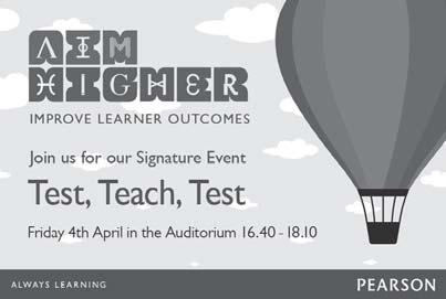 Saturday • Simplifying Secure English Language Testing Join us for the Pearson Signature Event - Test, Teach, Test Friday 4th April in the Auditorium 16.40 - 18.10