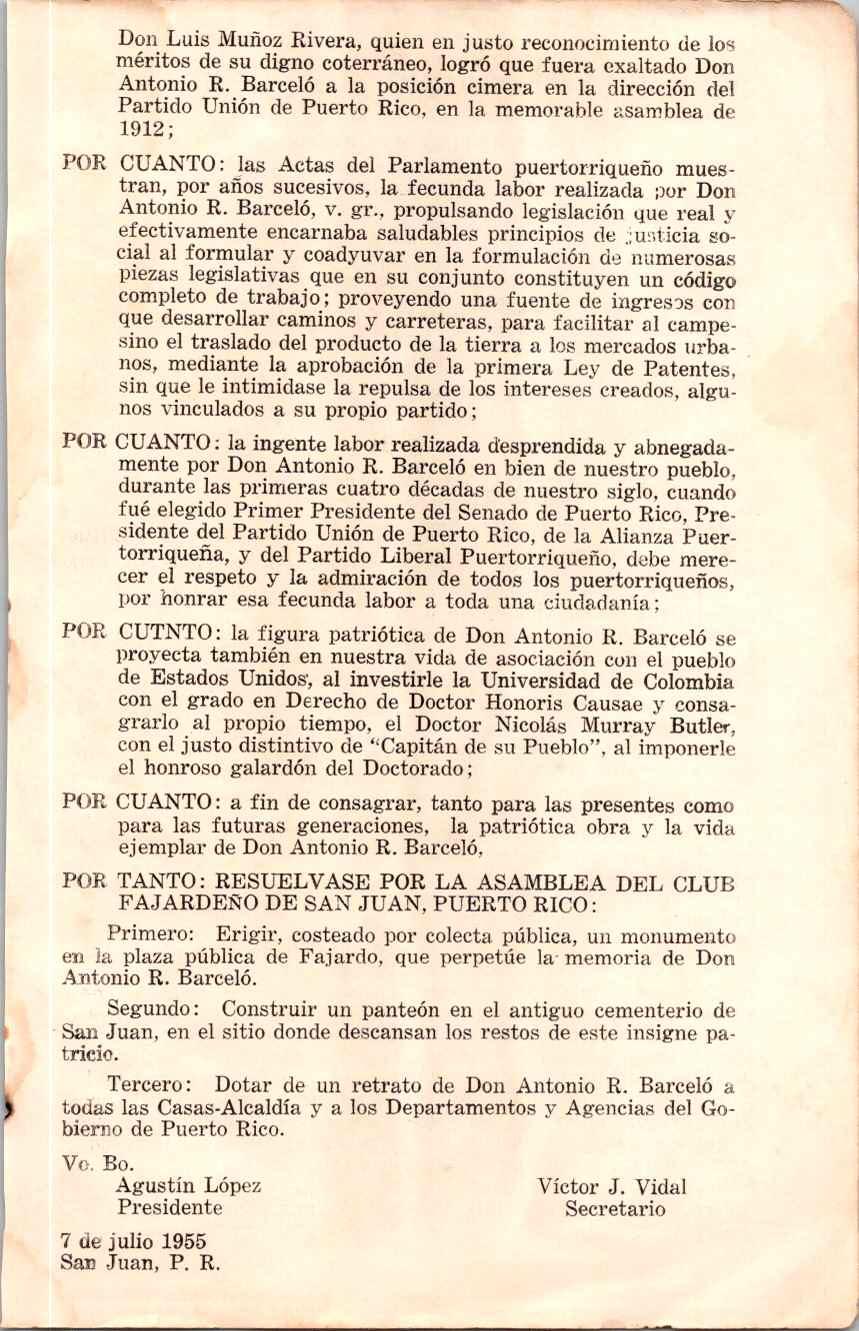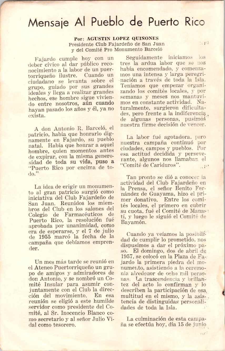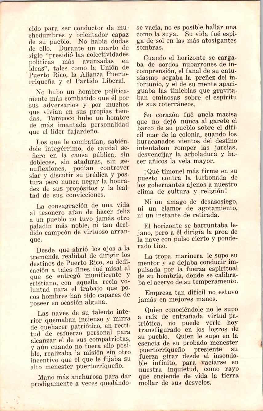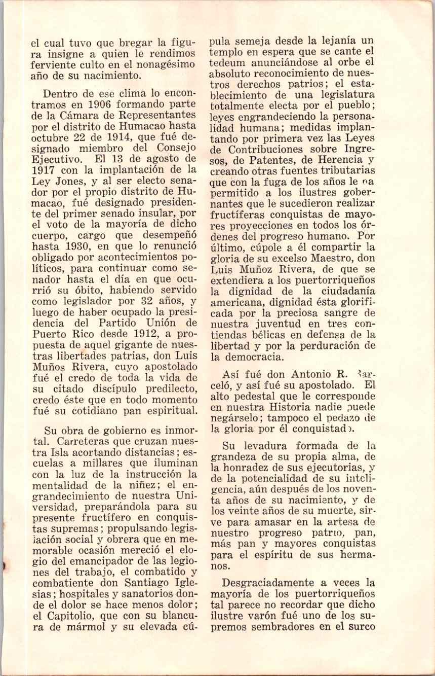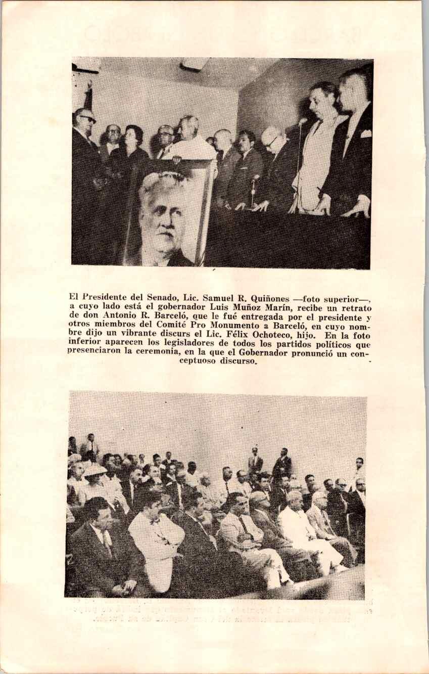 Raro libro que explica las perspectivas y visiones políticas de quien fuera uno de los líderes políticos más importes de principio del Siglo XX en Puerto Rico. Barceló fue el primer Presidente del Senado de Puerto Rico, Presidente del Partido Unión y del posterior Partido Liberal, en cuyo seno se dieron intensas polémicas y disensiones que culminaron con la fundación del Partido Popular Democrático en 1938 por quien fuera su devoto discípulo y luego su más agresivo opositor, Luis Muñoz Marín.