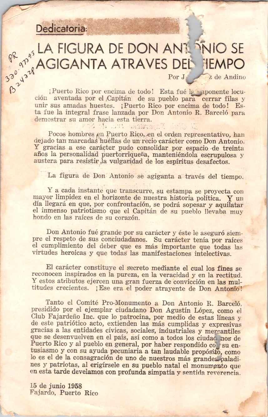 IATR: 1958 PUERTO RICO POR ENCIMA DE TODO de Antonio R. BARCELÓ.