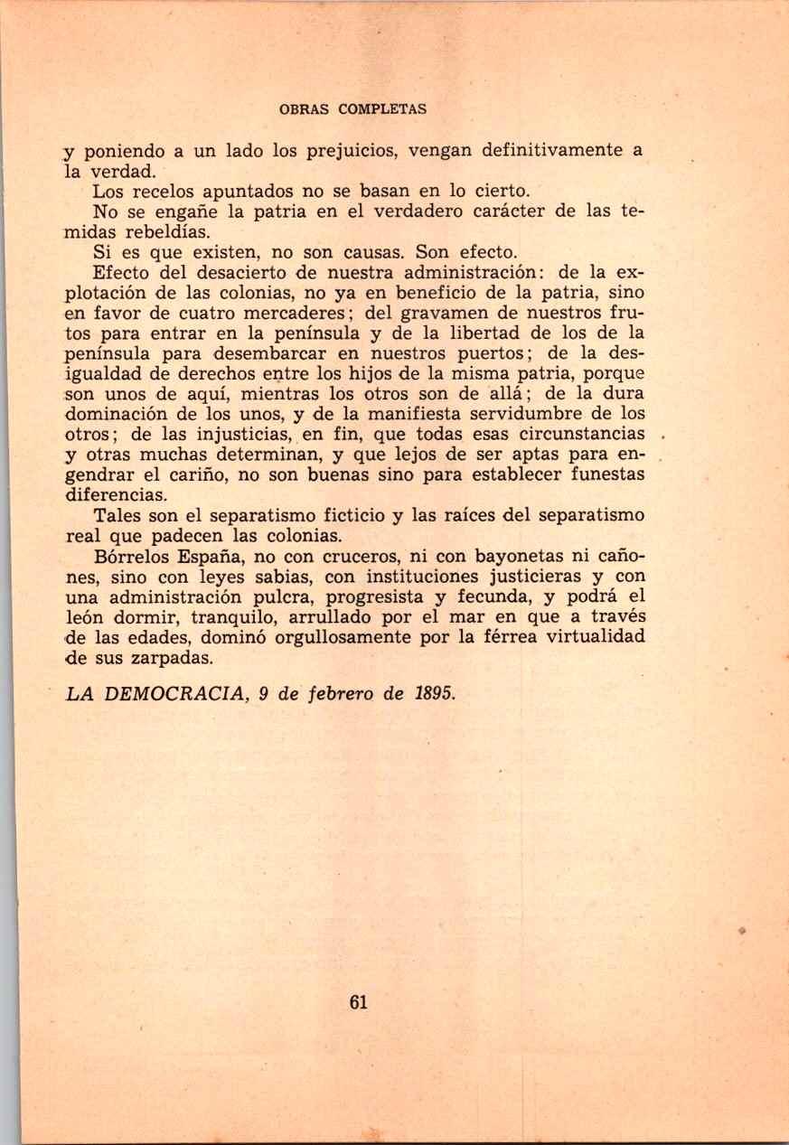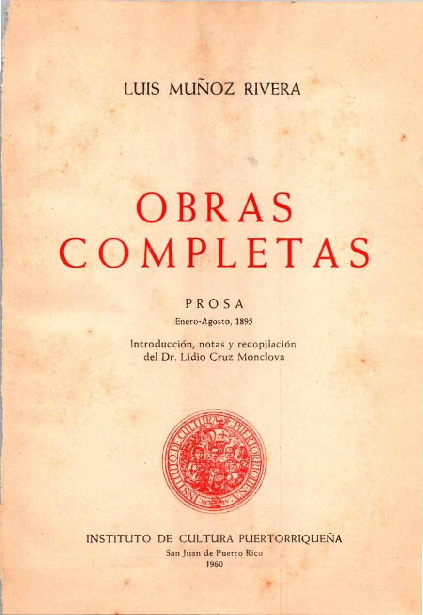 IATR:1960 1895 Ene-ago OBRAS COMPLETAS LUIS MUÑOZ RIVERA