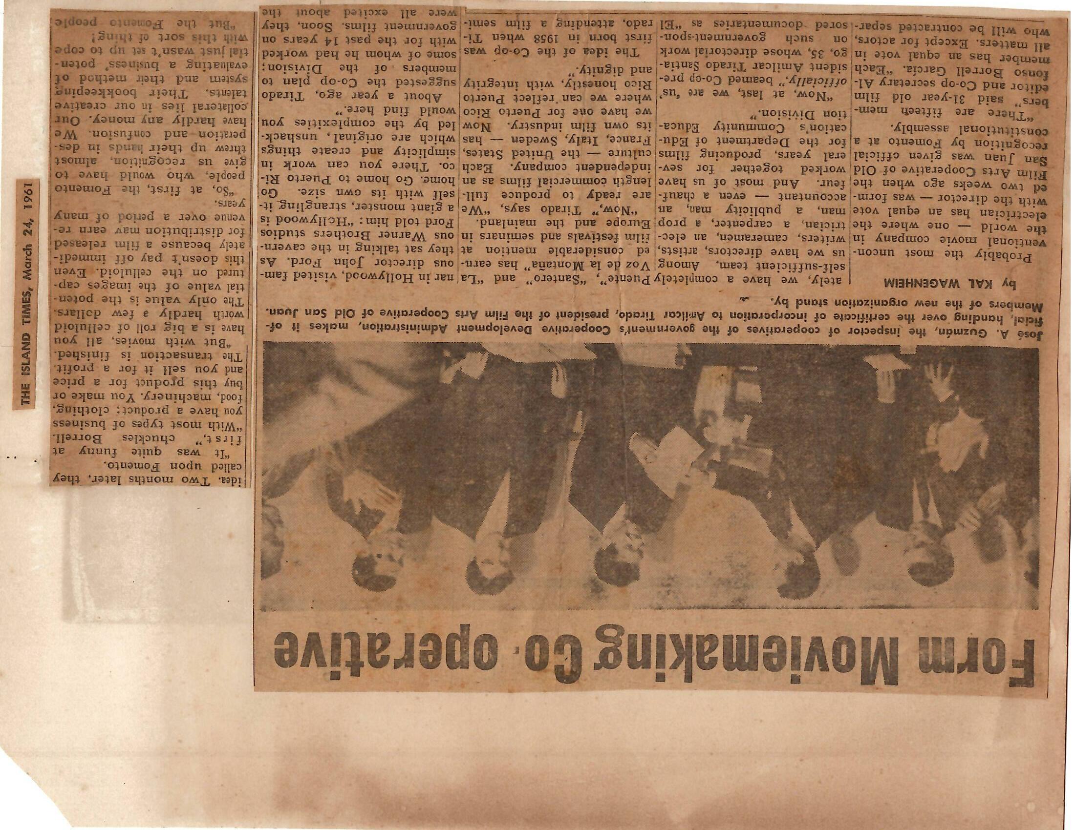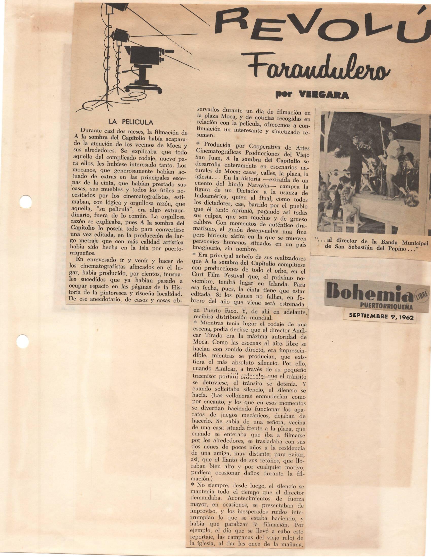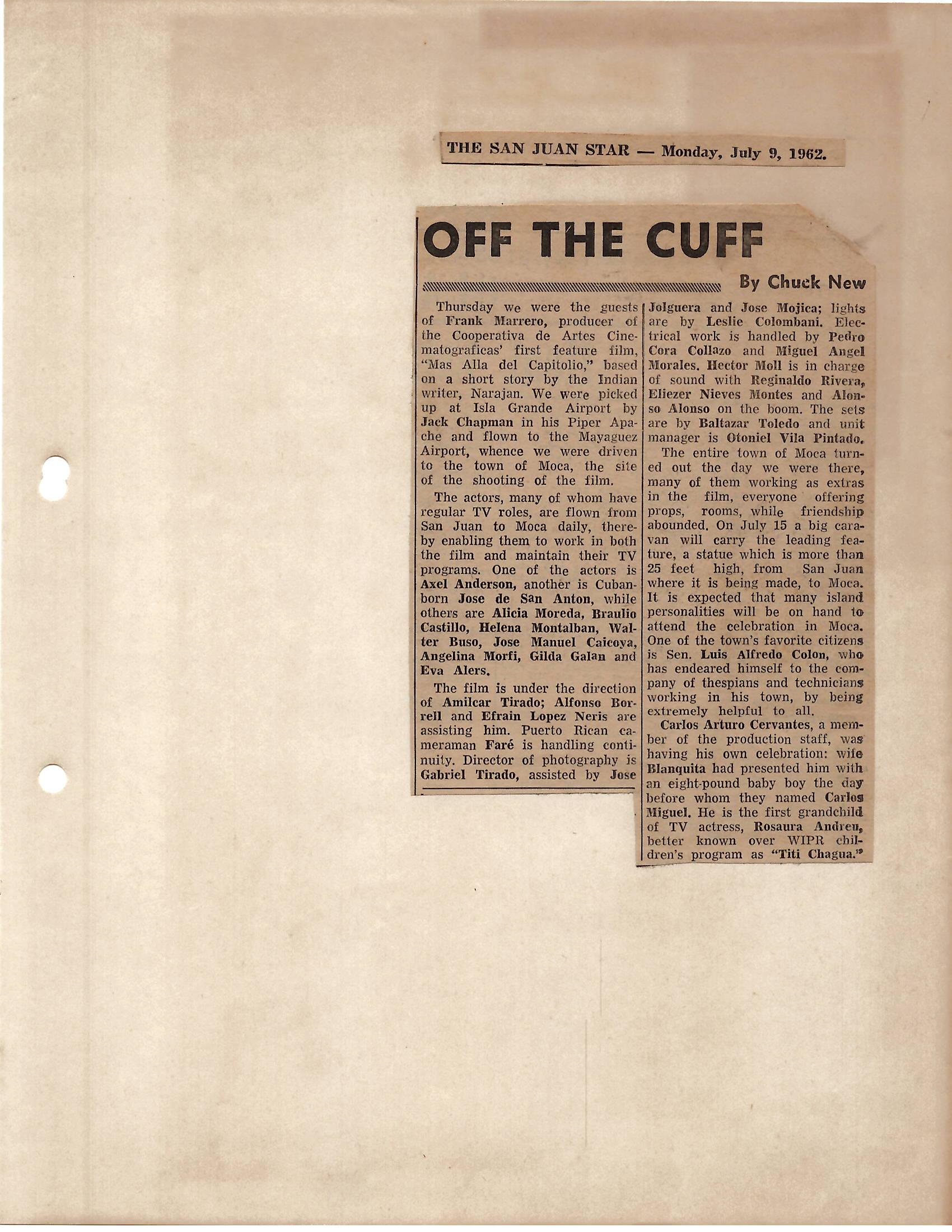Expediente que contiene notas de prensa, fotografías, entrevistas, y otros documentos sobre la realización de la película MáS ALLÁ DEL CAPITOLIO, uno de los grandes clásicos del cine puertorriqueño de la década de oro 1960-1970.
