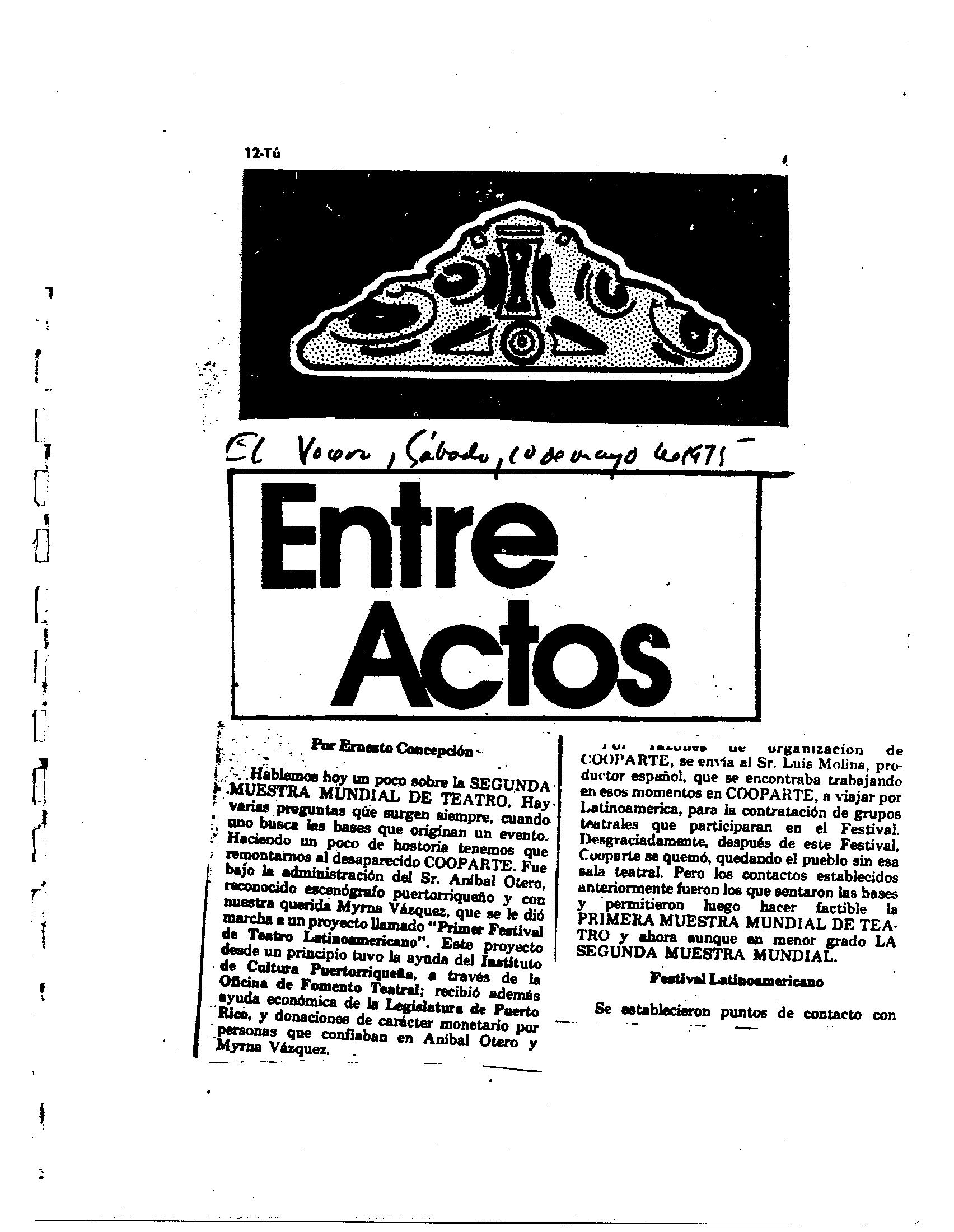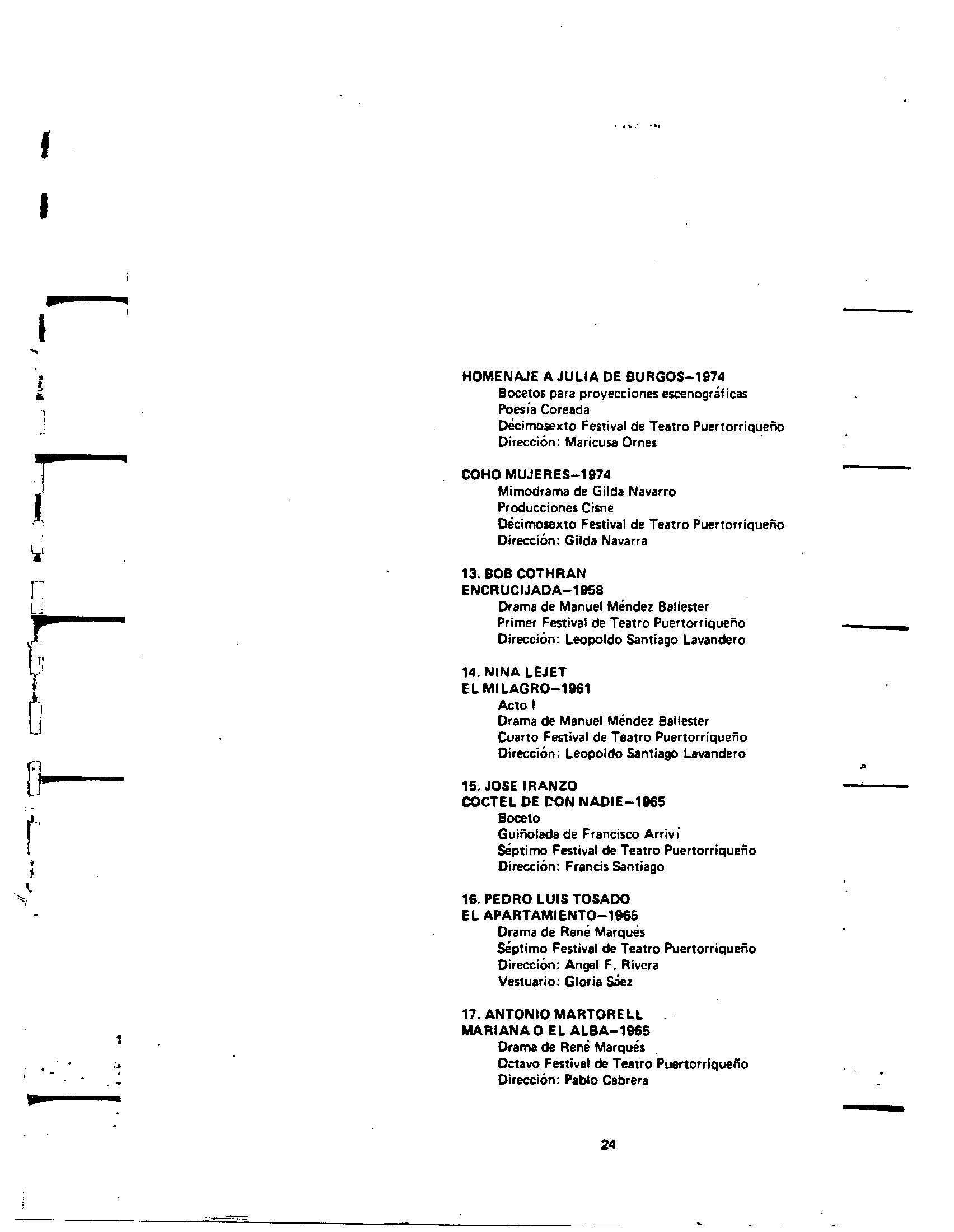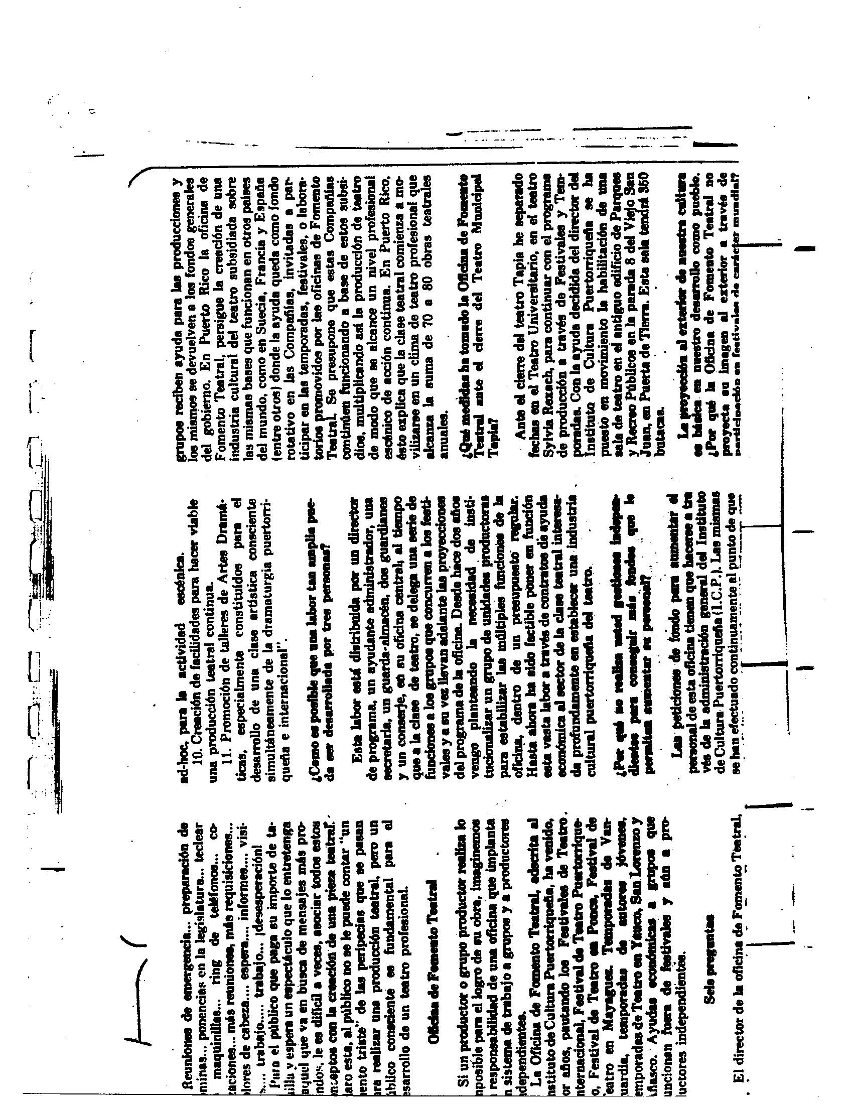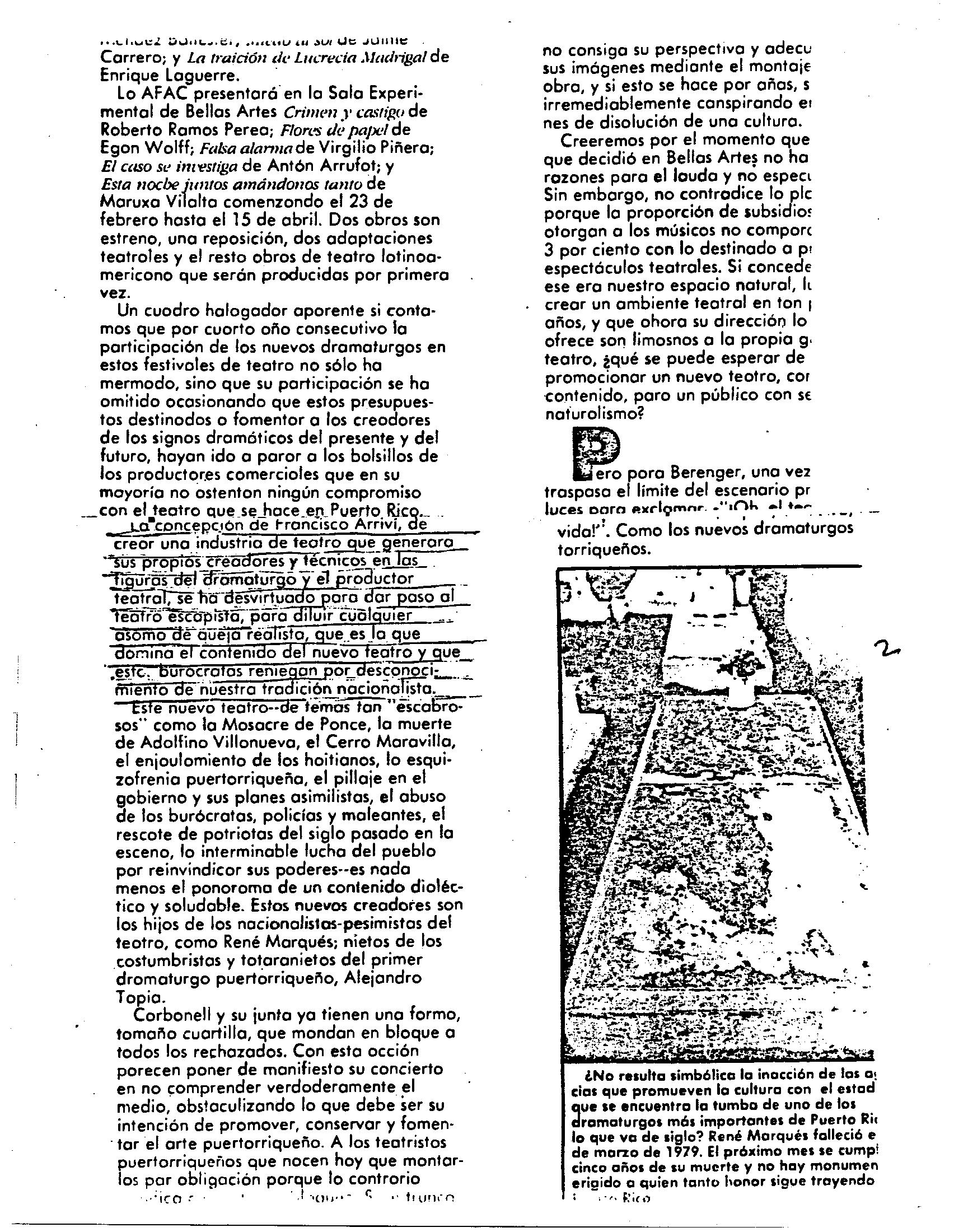IATR:Col. Francisco Arriví: 1974-1980 ESCILA, CARIBDIS Y REMOLINIO. Este fundamental libro auto publicado por ARRIVI, reúnele todos los documentos relacionados a las tres luchas más importantes dadas por él desde la Oficina de Teatro del Instituto de Cultura Puertorriqueña. El intento de usurpación que perpetraron varios empresarios latinoamericanos para quedarse con los fondos para teatro asignados por del Gobierno para ellos realizar Festivales Latinoamericanos en San Juan; las luchas contra los disidentes de los Festivales Puertorriqueños y la usurpación del Centro de Bellas Artes por la Administración para el Fomento de las Artes y la Cultura', institución creada por el Gobierno estadista de Carlos Romero Barceló para eliminar el Instituto de Cultura Puertorriqueña. Esta tres luchas eventualmente le costarían su salud física y su vida. Este es el testimonio de esas luchas.