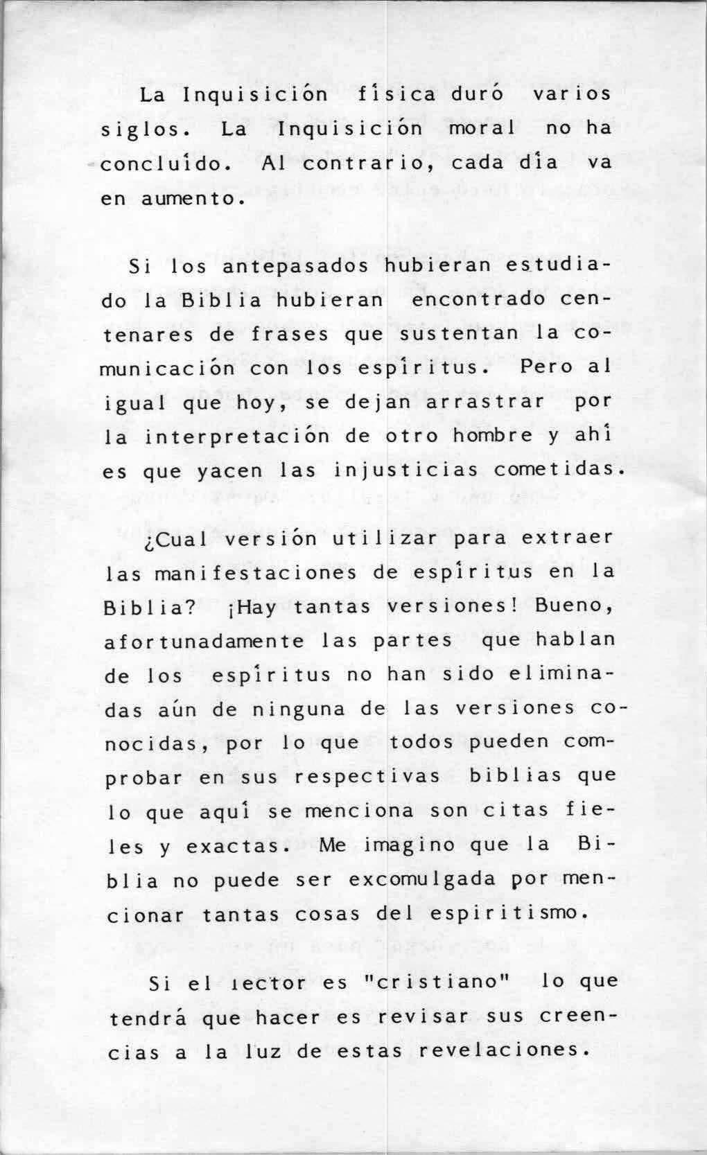 Cuando cogimos la Biblia --olvidese de las diferencias de las distintas versiones-para ver en qué basagan los religiosos sus ataques al Espiritismoi nunca imaginamos que dicho libro se convertiría en uno de los principales puntos de apoyo de dicho ideal.