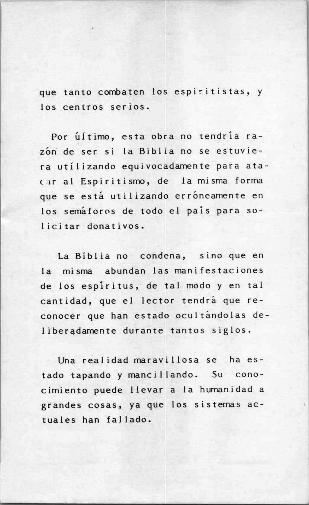 Por úftimo, esta obra no tendria raz&~ de ser si la Biblia no se estuviera utílizando equivocadamente para ata( .1 r al Es pi r i t i smo, de la misma forma que se está utilizando err&nearr~nte en los semáforns de todo el pais para solicitar donativos.