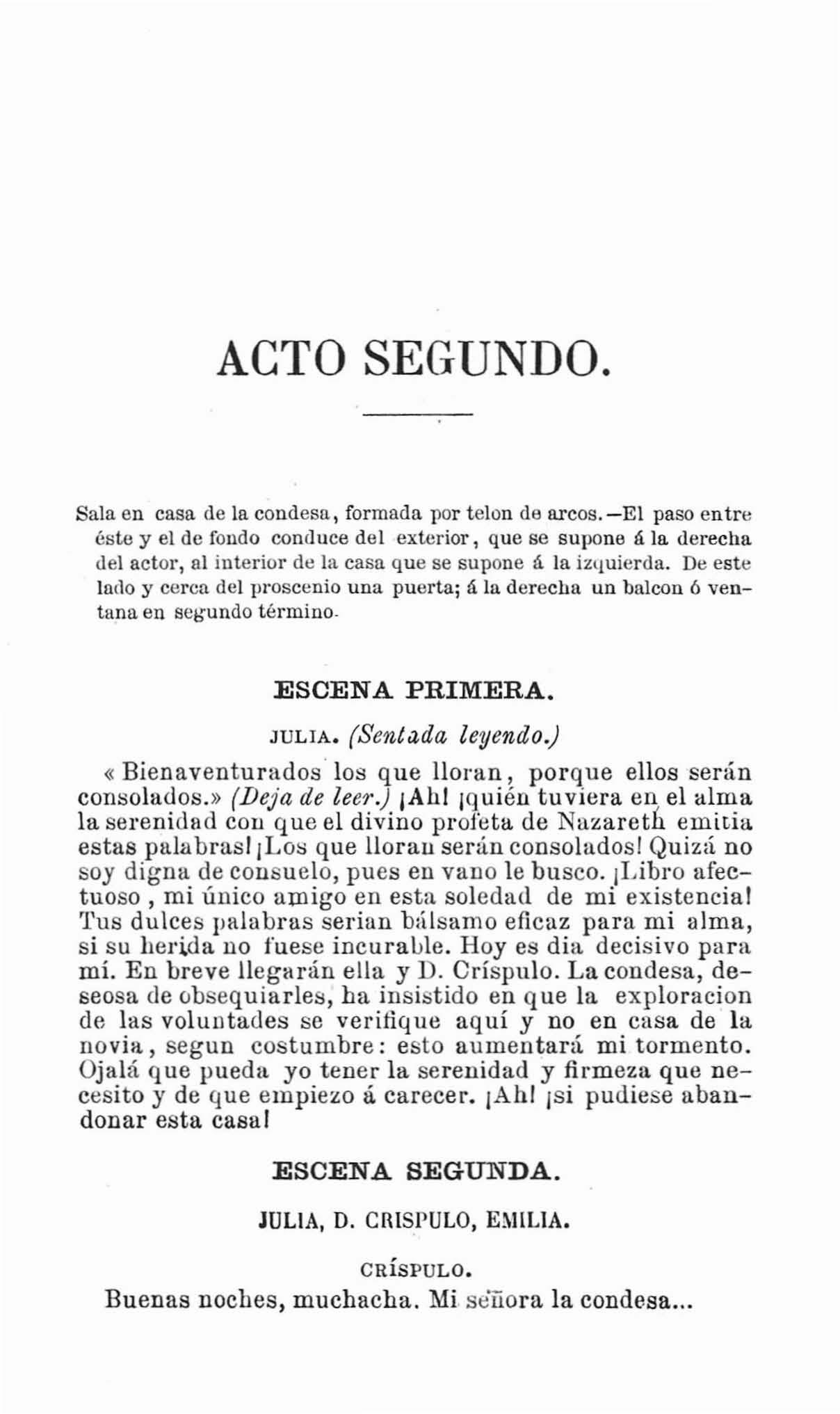 Dicho y JULIA (que sale con el cabello suelto, pólida y febril, expresando en su flsonomía su malestar físico y su desesperacion. Su traje un poco descuidado, da á conocer que se ha vestido con el desaliilo y ra¡ 'idez que debe suponerse en quien como ella acaba de dejar el lecho del dolor).