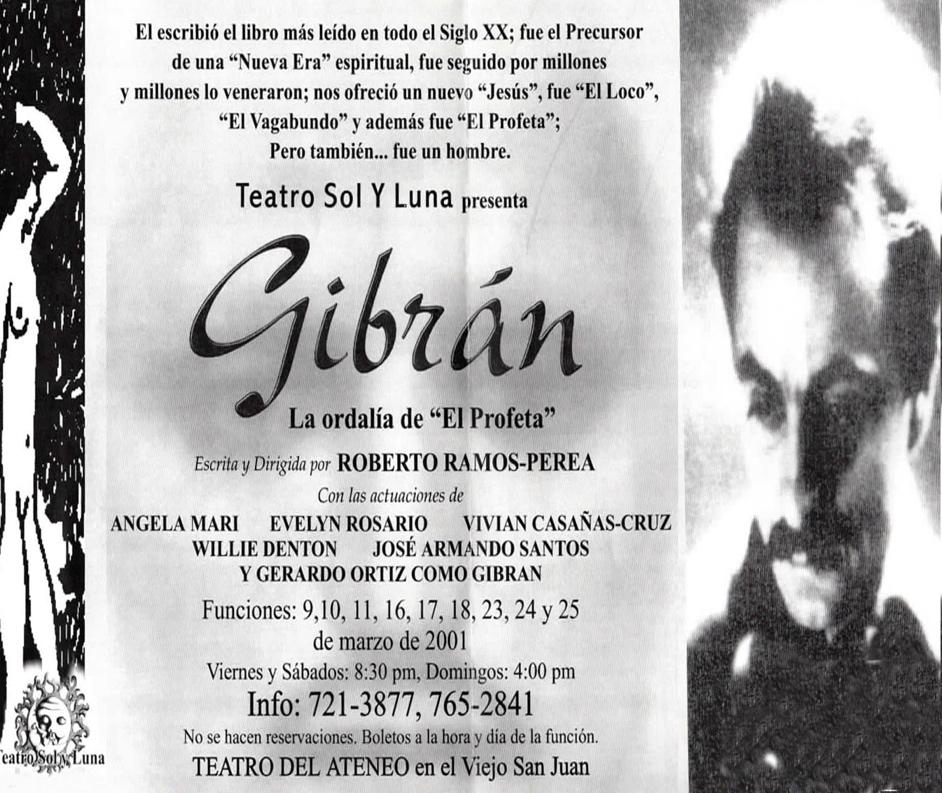 La obra GIBRAN: la ordalía de El Profeta de Roberto Ramos-Perea ganó el Premio a la Mejor Obra de la Dramaturgia Puertorriqueña del año 2001