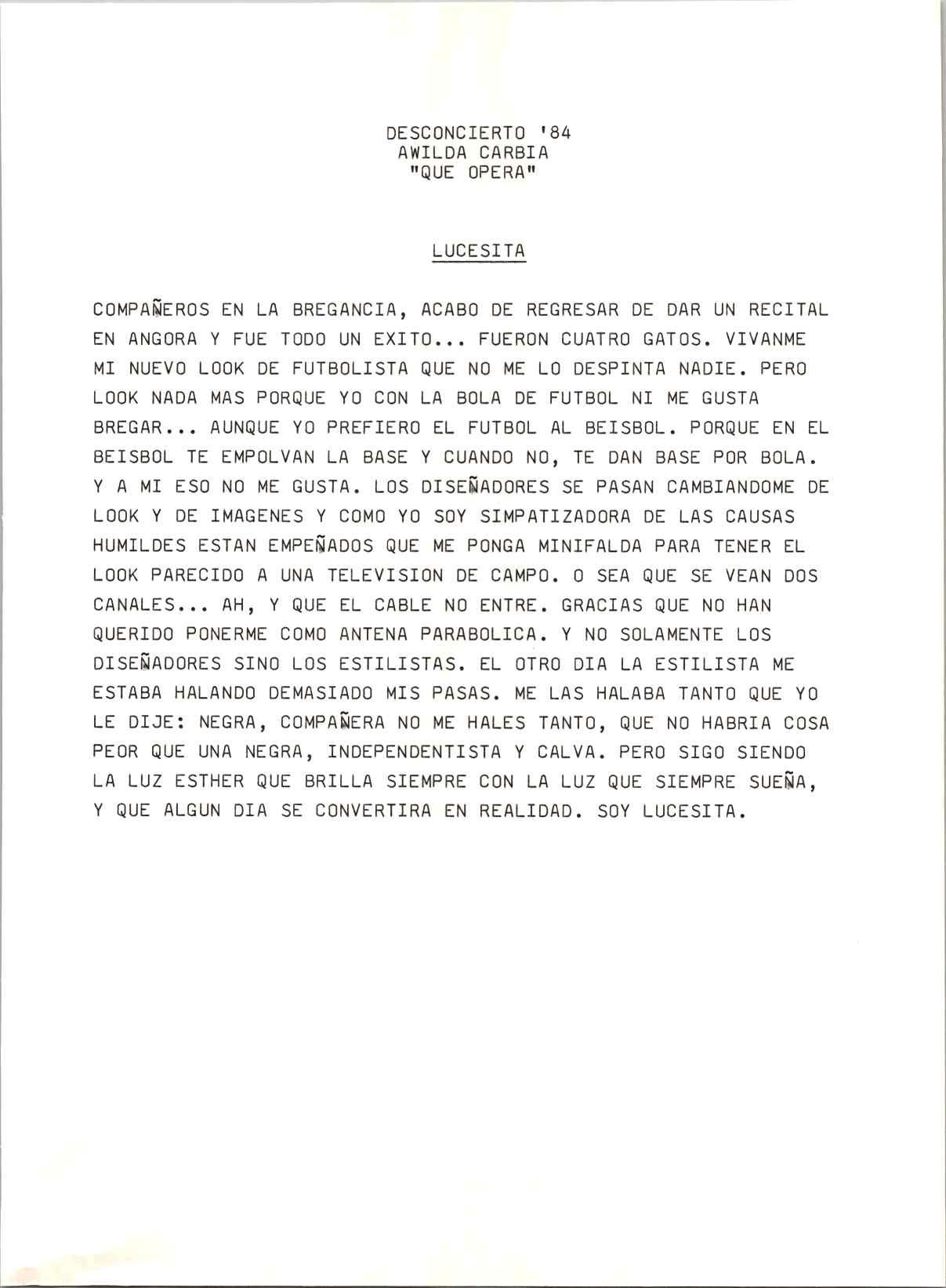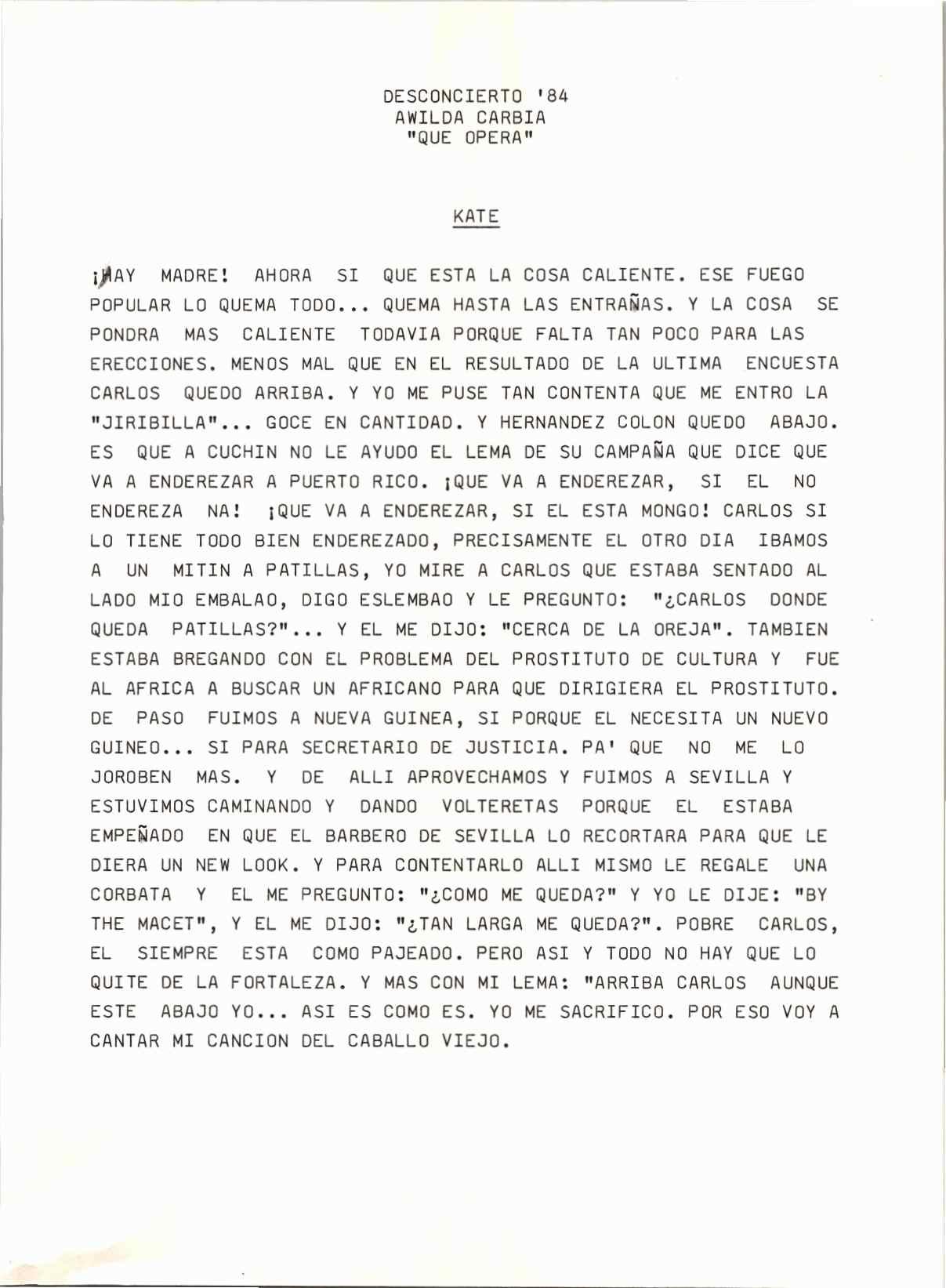 Libretos, noticias, fotografías y documentos de la más destacada actriz y comediante escénica y televisiva del Siglo XX puertorriqueño.