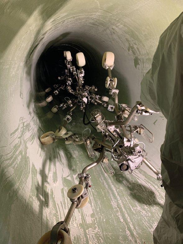 In seguito, tramite utilizzo di robot con testa fresante, la tubazione è stata liberata da tutti gli elementi che potevano costituire un impedimento alla posa del liner, tra cui radici, calcestruzzo e residui ferrosi.