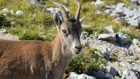 The Mountain Ibex, Capra ibex, is native to the European Alps and is known for its impressive climbing skills, allowing it to navigate steep, rocky terrain with ease.