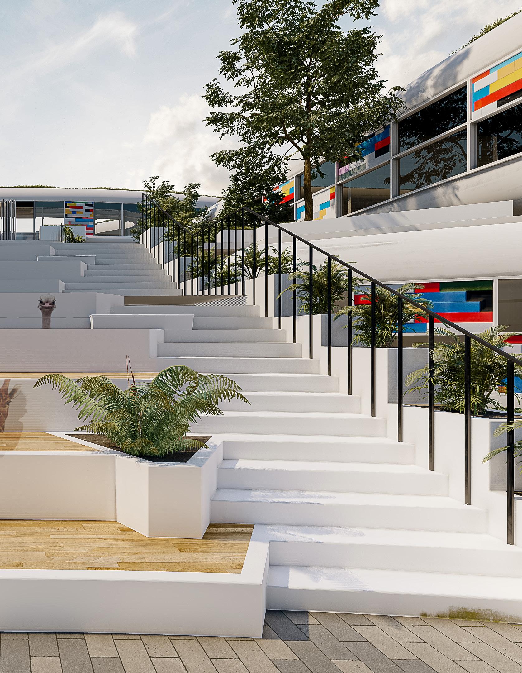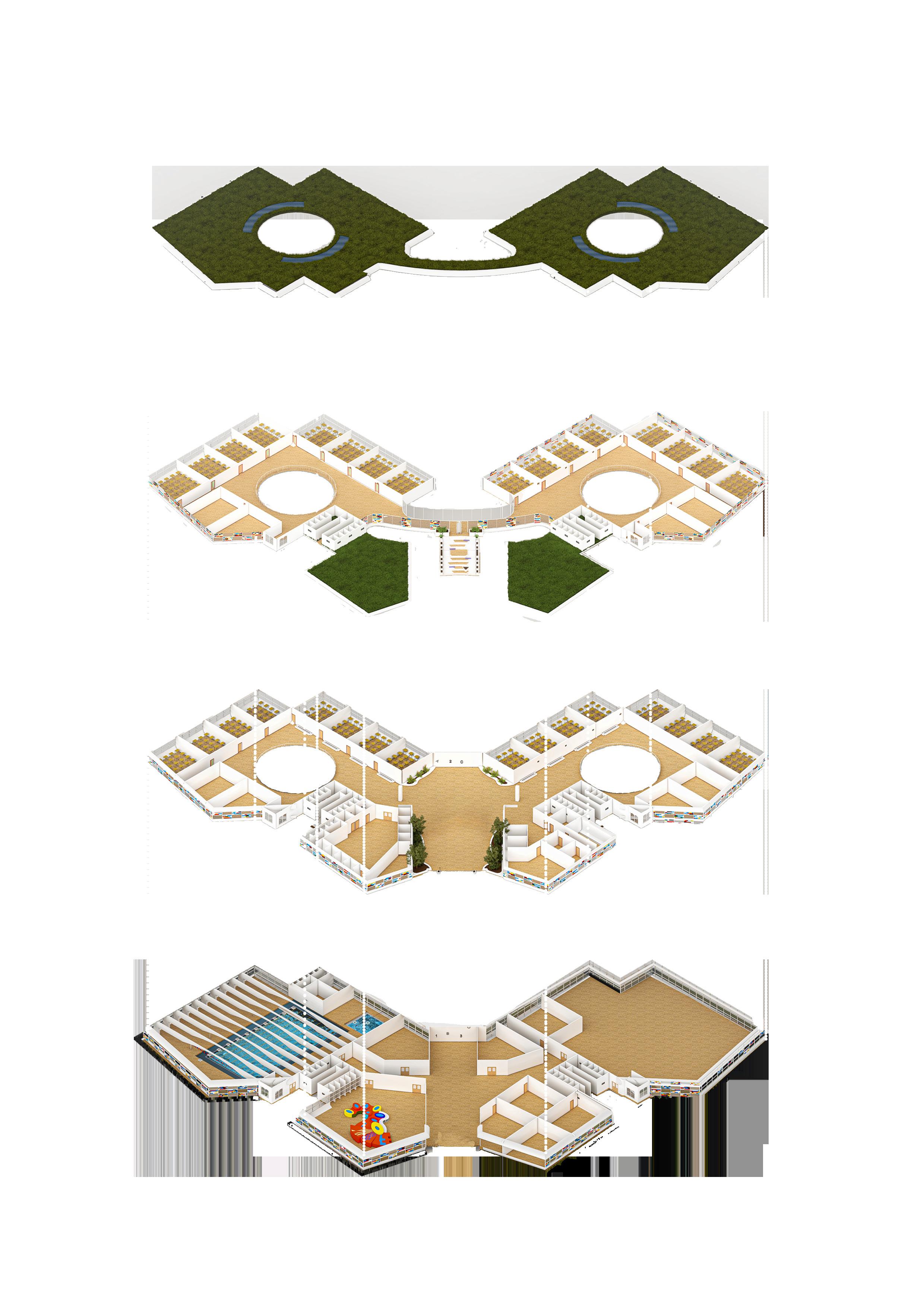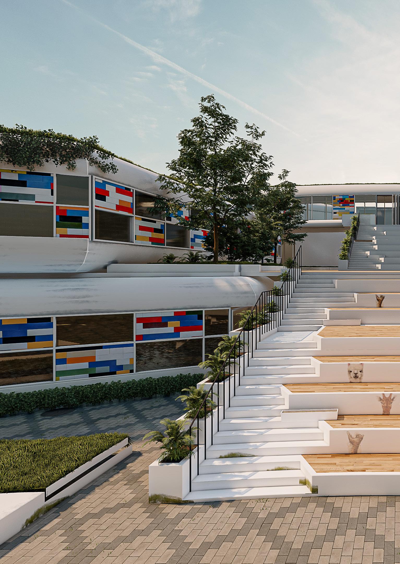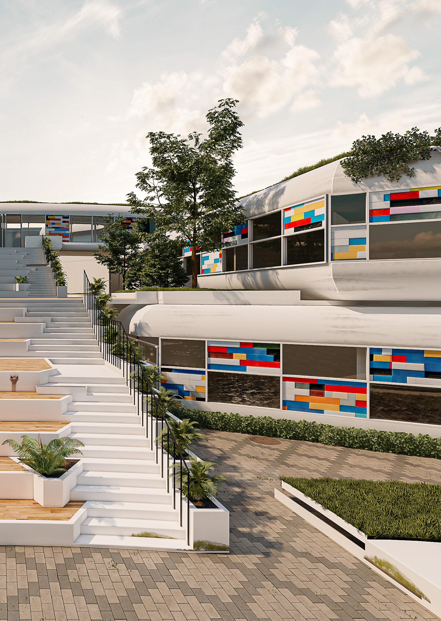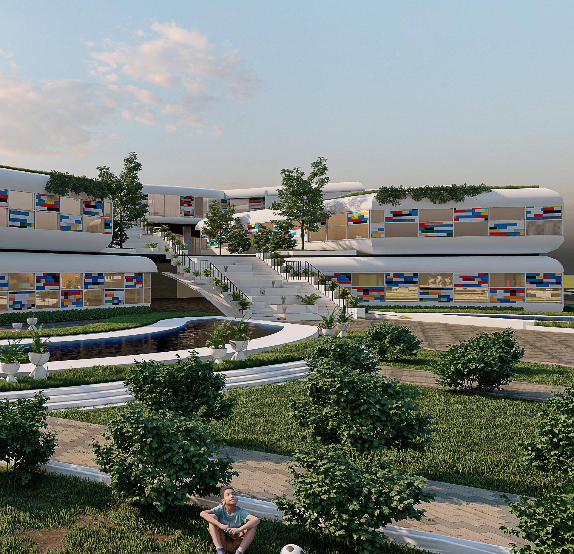 along the site and the use of recyclable material as a tool for Facade. design is climatic ventilation,that’s for puncture is given. It enables with green roofs