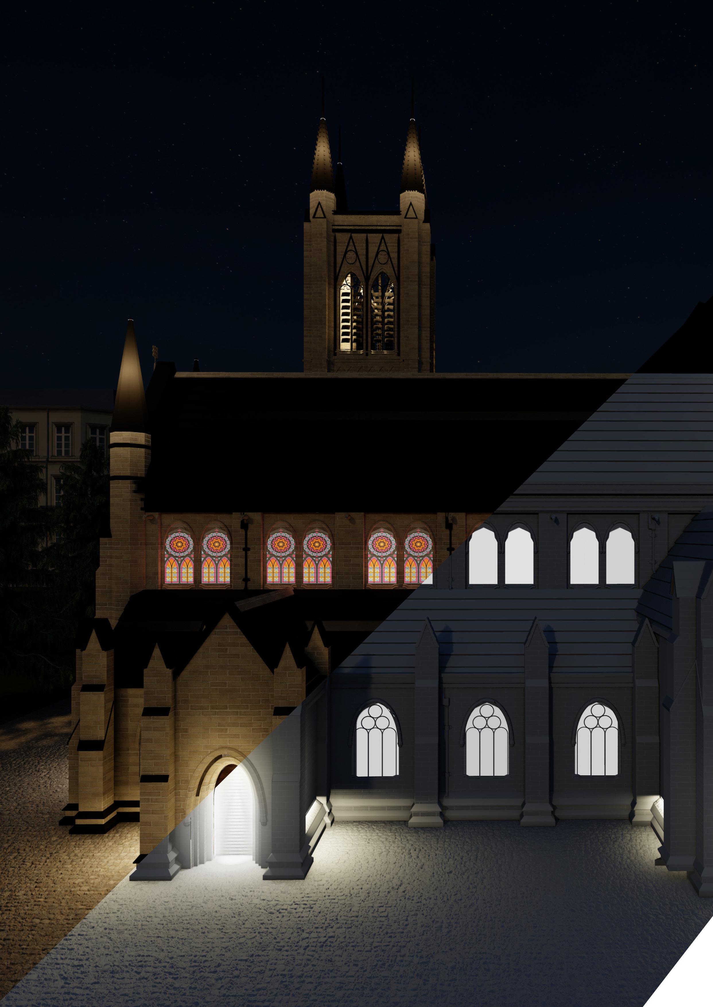 Applying the principles of lighting design in built environment to support activity, architecture and atmosphere.
