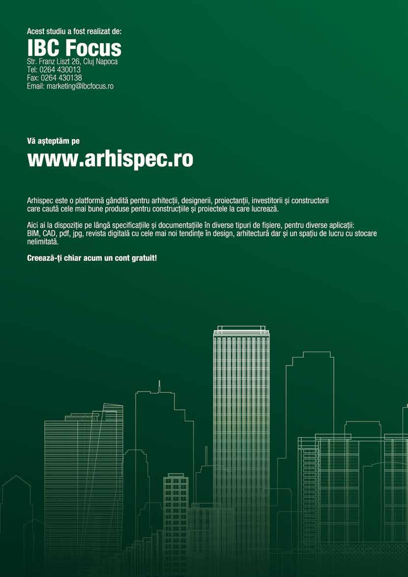 - firme care nu au avut în derulare pe parcursul perioadei analizate pe teritoriul României niciun proiect de construcție sau firme despre care echipa IBC Focus nu a obținut informații cu privire la proiectele derulate fie telefonic, din informații din piață sau prin intermediul chestionarului aplicat la peste 7000 de firme care activează în domeniul arhitecturii sau proiectării.