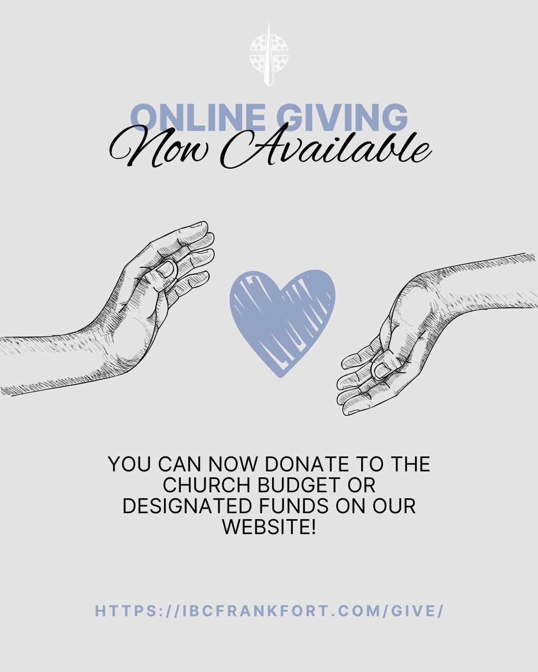 If you would like to donate online, go to the church website at: ibcfrankfort.com/give/