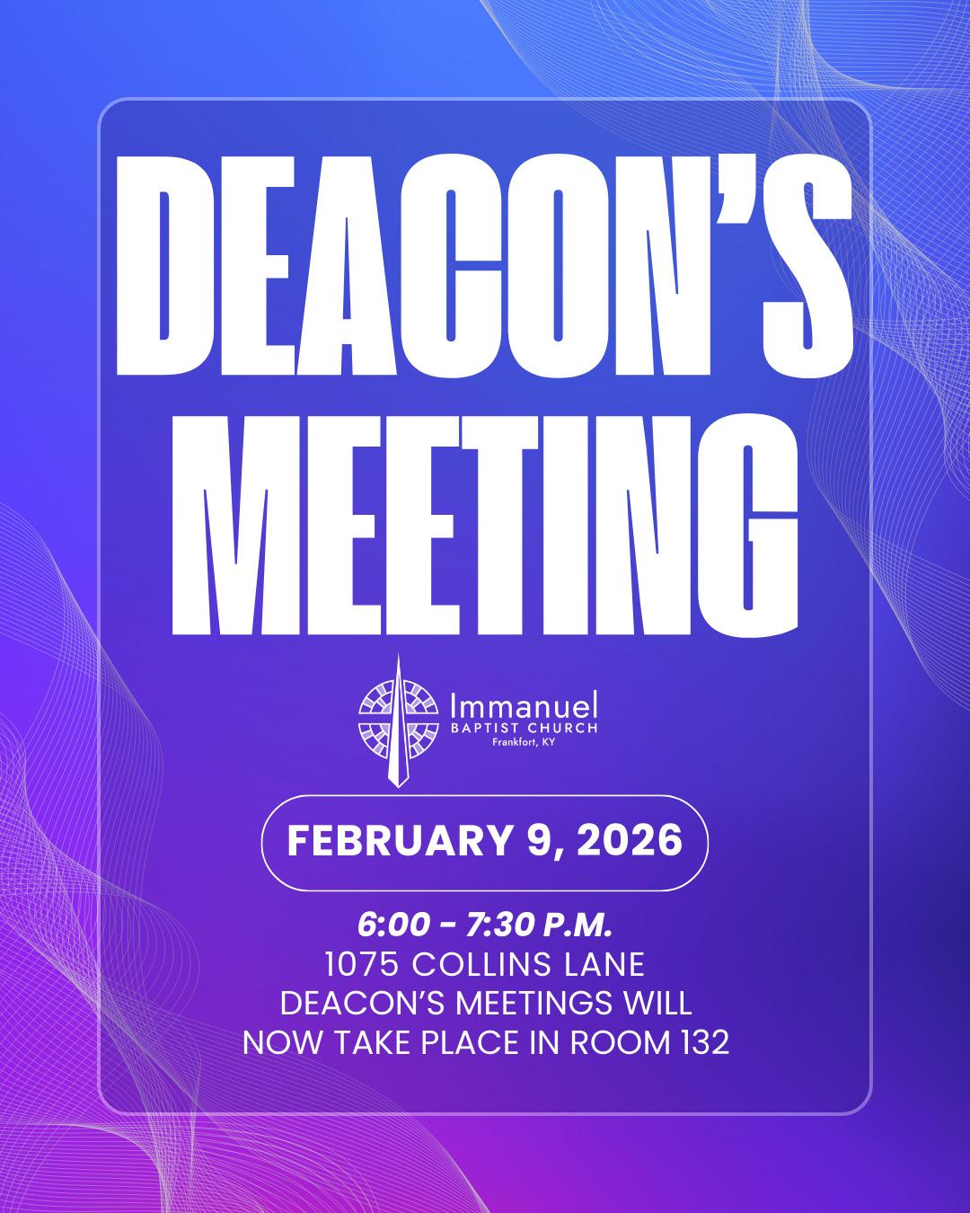 6:00 pm Deacons’ Meeting