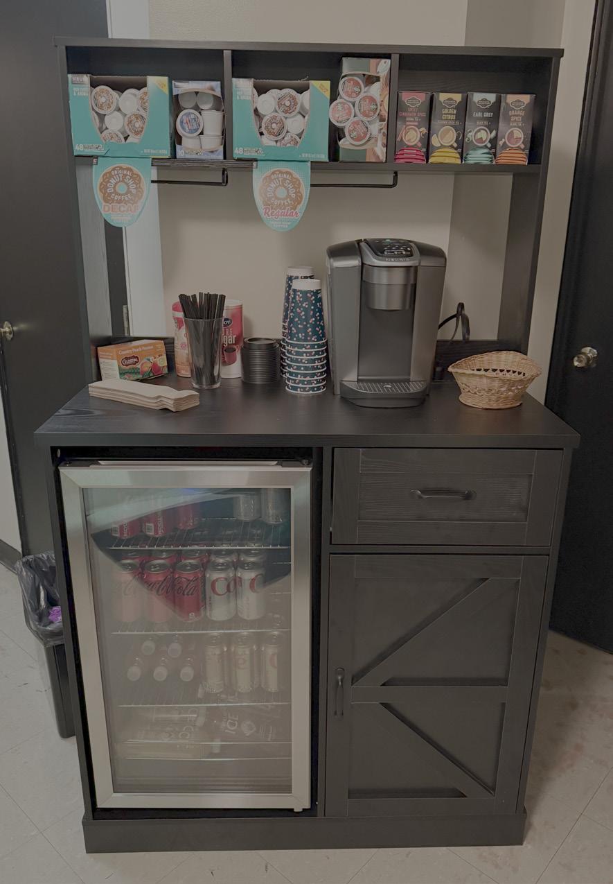 Since it is in the back corner, it may not be as accessible as intended. In the coming weeks, we may try moving it to a more regularly traveled part of the hallway. Please be sure to check it out and grab a refreshment when you are in the building!
