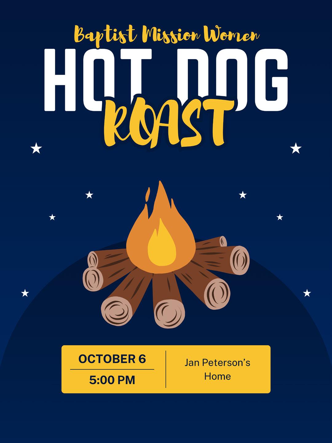5:00 pm Baptist Mission Women Hot Dog Roast at Jan Peterson’s House