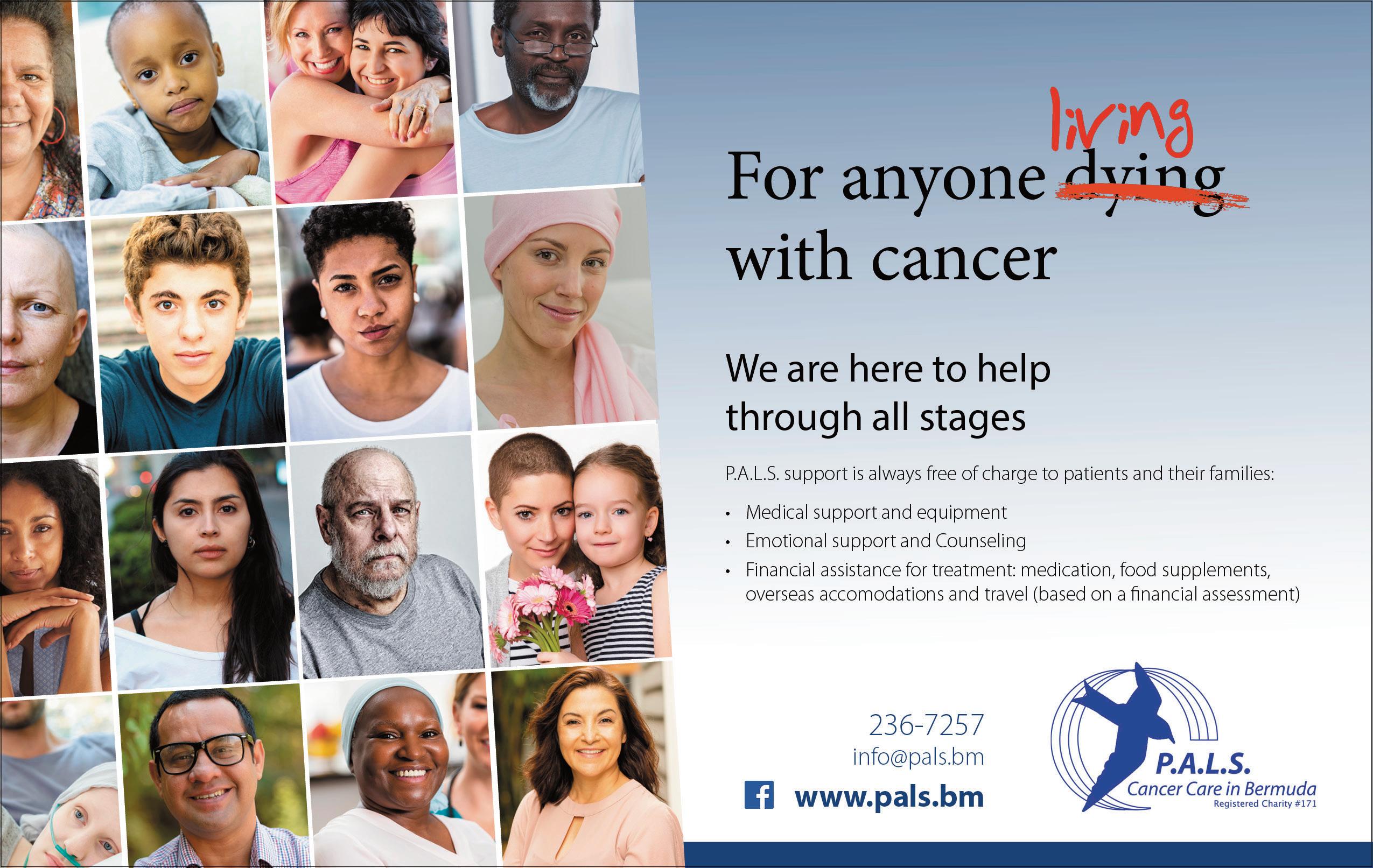 Today, Bermuda’s only home cancer care specialised nurses, a palliative care physician, and a full-time medical social worker who all see approximately 180 patients a month. PALS supports all patients with cancer at any stage of the disease. Some of its patients complete their cancer treatment and no longer require its specialised services; others require palliative care for pain and symptoms experienced with end-of-lifecare. PALS continues to support the patient and his or her family medically, emotionally, and