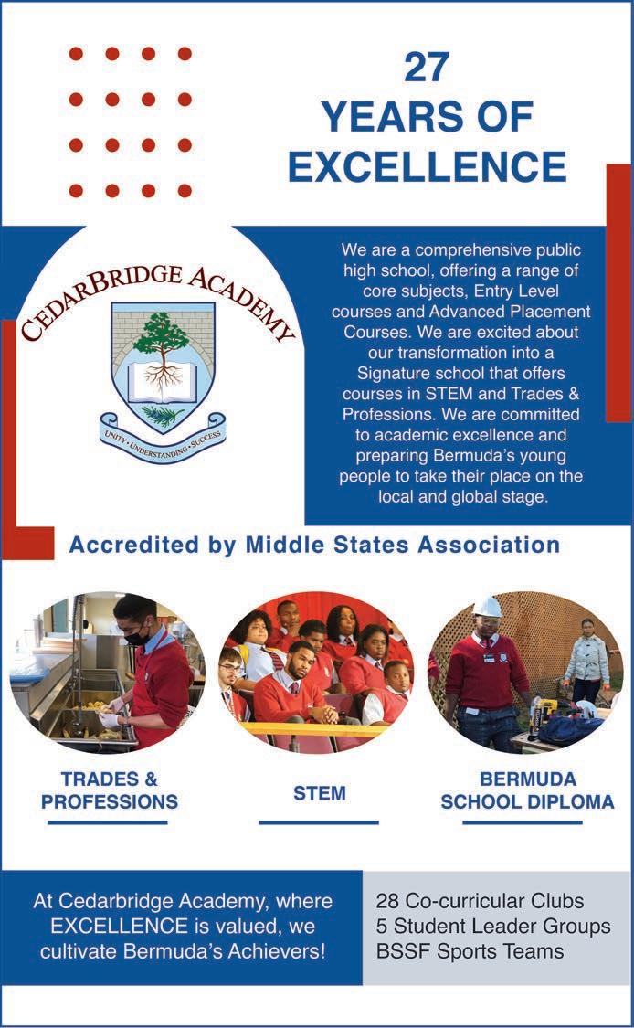 We are focused on creating pathways that empower young Bermudians to succeed in an ever-changing world. This includes preparing you for careers in emerging industries such as fintech, renewable energy, and digital innovation, while ensuring that traditional sectors like hospitality and international business remain strong pillars of opportunity. Programmes like the Bermuda Coders Initiative equip Bermudians with cuttingedge skills in software development, artificial intelligence, and data science, helping you compete on the global stage and become leaders in an increasingly tech-driven world.