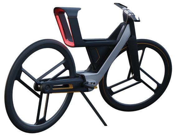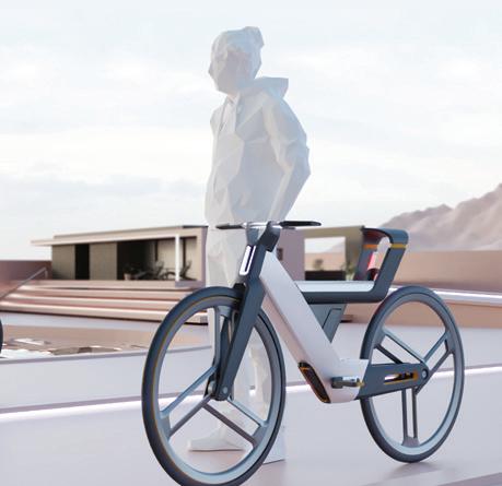Buck是一台專為上班族設計的電動自行 車,使用者能自由地選擇想要的工作場所,而它 的車身內設有可收納的升降桌板,車尾設有公事 包大小的欄架。欲工作時,只需將座椅翻轉並把 桌板拉出轉正即可使用。Buck同時建有智慧路 線導航,使用者只需選擇希望的地點類型,導航 便可以幫助使用者計算,並找到附近最適合停留 的辦公地點。 Designer 20 21 THE 24TH INTL. BICYCLE DESIGN COMPETITION Intelligent, innovative Ebike / 智慧化創新電動自行車 Intelligent, innovative Ebike / 智慧化創新電動自行車