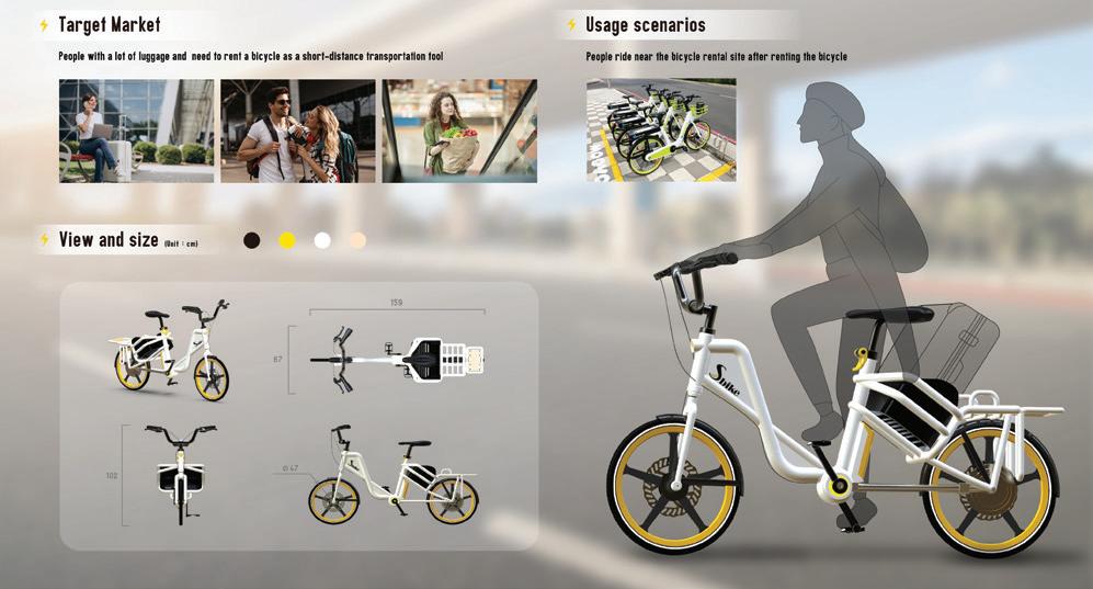 networking as well as sharing and service. According to the data from the Ministry of Finance, the export volume of electrically power-assisted bicycles in 2021 increased by nearly 30% compared to 2020. The technologies and innovative applications of electrically power-assisted bicycles laid out in advance are the crucial point for Taiwanese industry to usher in the upcoming golden age. To echo the above trends, the theme of the 24th IBDC is formulated to be “Intelligence, Sustainability, and Living from Heart.” This special issue contains 17 award-winning designs, which links different styles and forms of bicycles, such as mobile office bicycles, welcab, shared bikes, cargo bikes, etc. All these entries are fully integrated with the new lifestyles and considered to be feasible, which are very ingenious and eye-catching.