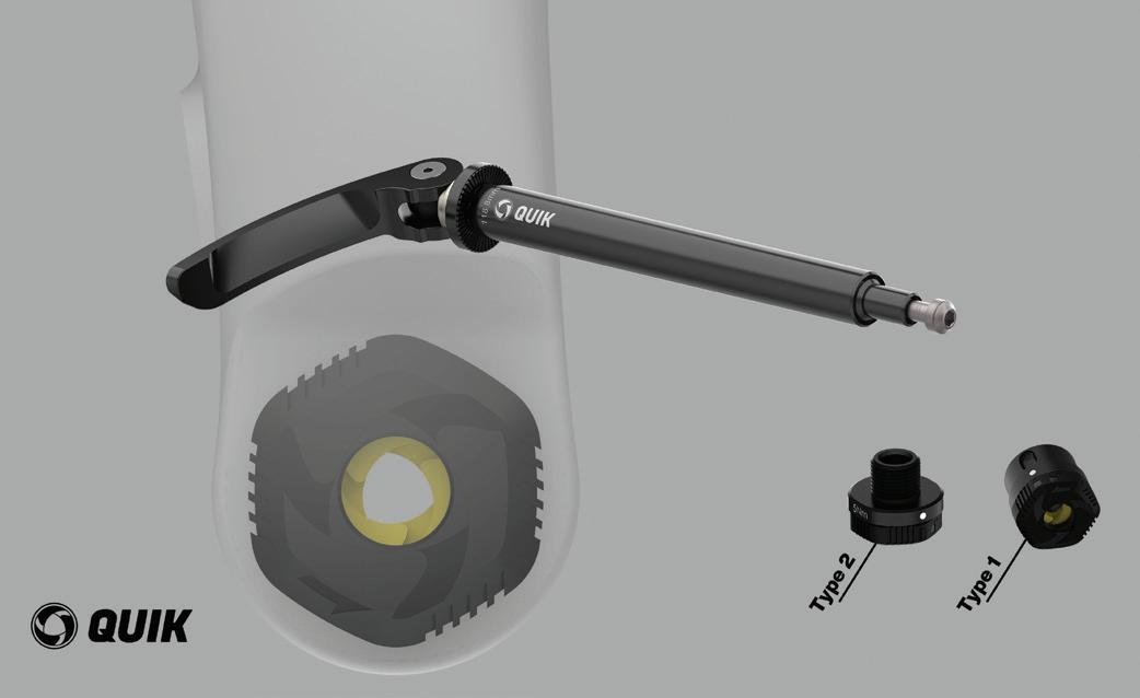 現代自行車貫通軸已取代傳統快拆成為『慢 拆』。在UCI賽事中,與其拆裝輪子,技師寧 願直接更換整台車以節省時間。這也正是我們 設計QUIK快拆的出發點。 我們針對貫通軸設計的快拆裝置,只要轉 一下旋鈕,就可以輕鬆的秒組裝或拆卸輪組。 當手離開旋鈕時,旋鈕會縮回至最小內徑並隨 時保持上鎖位置,軸心則不能移除,達到最安 全的保護。 Designer 劉育辰 40 41 THE 24TH INTL. BICYCLE DESIGN COMPETITION Intelligent bicycle components / 自行車智能化零配件 Intelligent bicycle components / 自行車智能化零配件