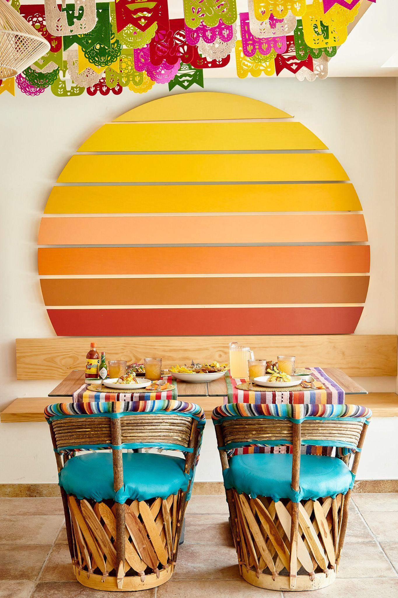Susparedesestándecoradascon Alebrijes,artesaniamexicanaque representaseresimaginarios formadospordiferentesanimales.