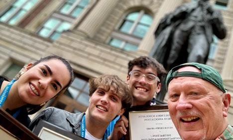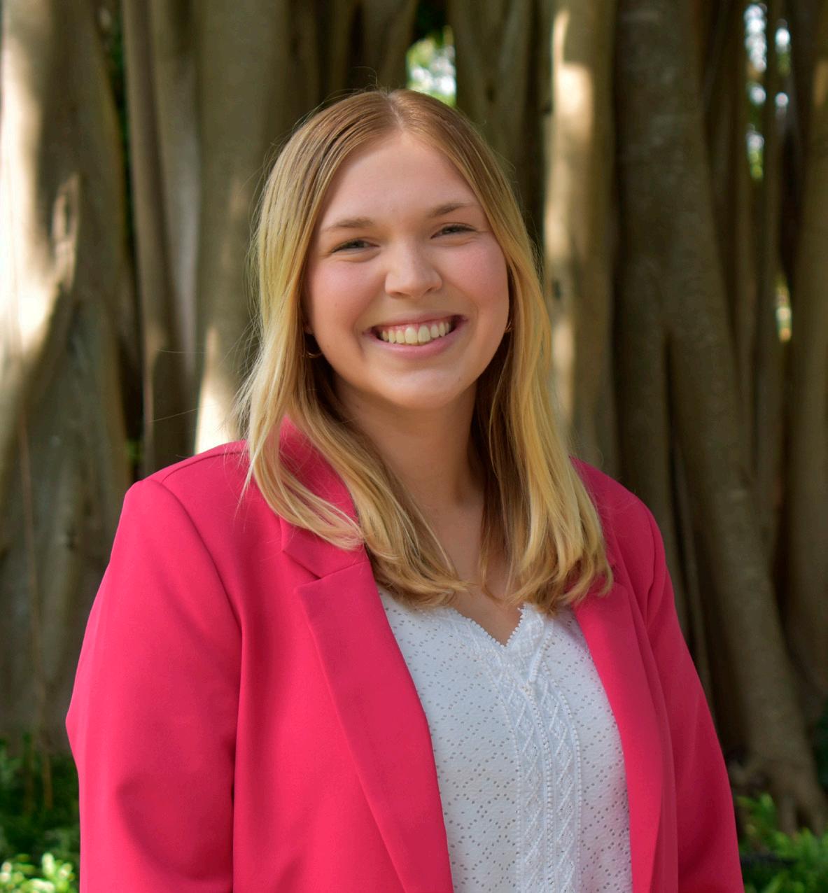 SUMMER WORK Hannah Kuker, junior, won first place at the Academy of Legal Studies in Business annual international conference. With the help of faculty advisors, her paper analyzed AI rights in visual arts. Photo and information courtesy of News@TheU