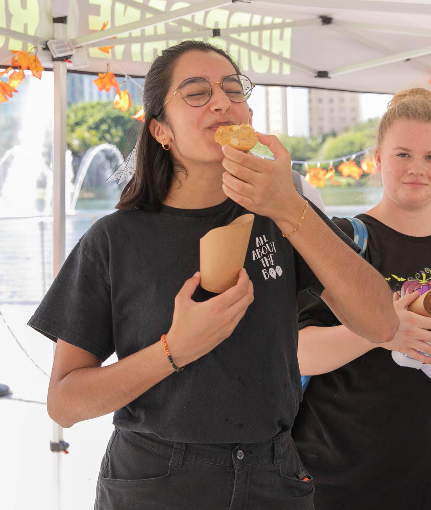 An ice cream stop at the Coldstone foodtruck offers students a way to cool down after a long day of classes. Trucks can be found daily at the Rock Plaza.
