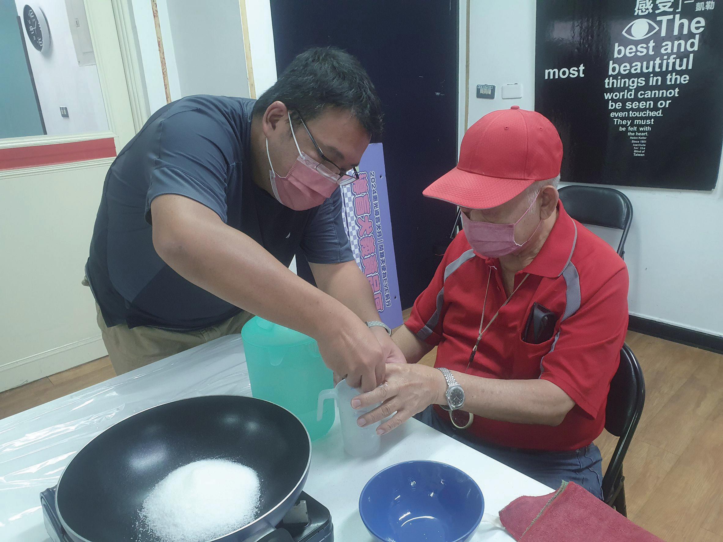 (圖2)實習期間協助教視障者確認水杯水位