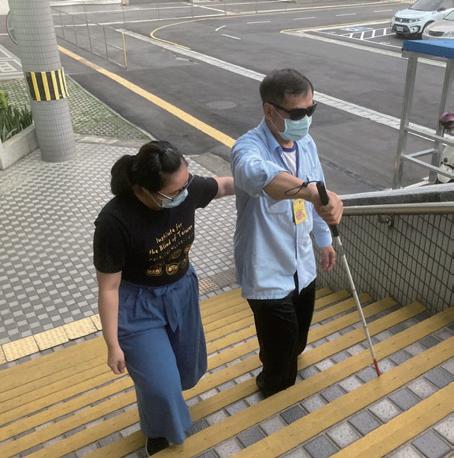 回憶起爸爸第一次接觸盲人重建院是在他的視力 剛退化的時候,我還記得全家人苦口婆心勸爸爸要多 去嘗試不同的事物,結果爸爸在參加第一次活動後回 來說:「我不是全盲!萬一以後變成那樣怎麼辦?」 全家人都陷入了沉默,我們不知道還可以多做些什麼 去幫助爸爸,加上我們沒有同住的關係所以照顧的責 任多半落在媽媽身上,當我看到爸爸請媽媽協助一些 日常生活事物時,只要不是”立刻”完成他的需求他 便會急促的叫媽媽快一點,在一旁的我其實會很希 望能夠幫忙因為我發現爸爸忘記自己的太太年紀也大 了,她也需要一些反應的時間,可惜的是當我主動提 出協助意願時,爸爸總是一次又一次的拒絕我。