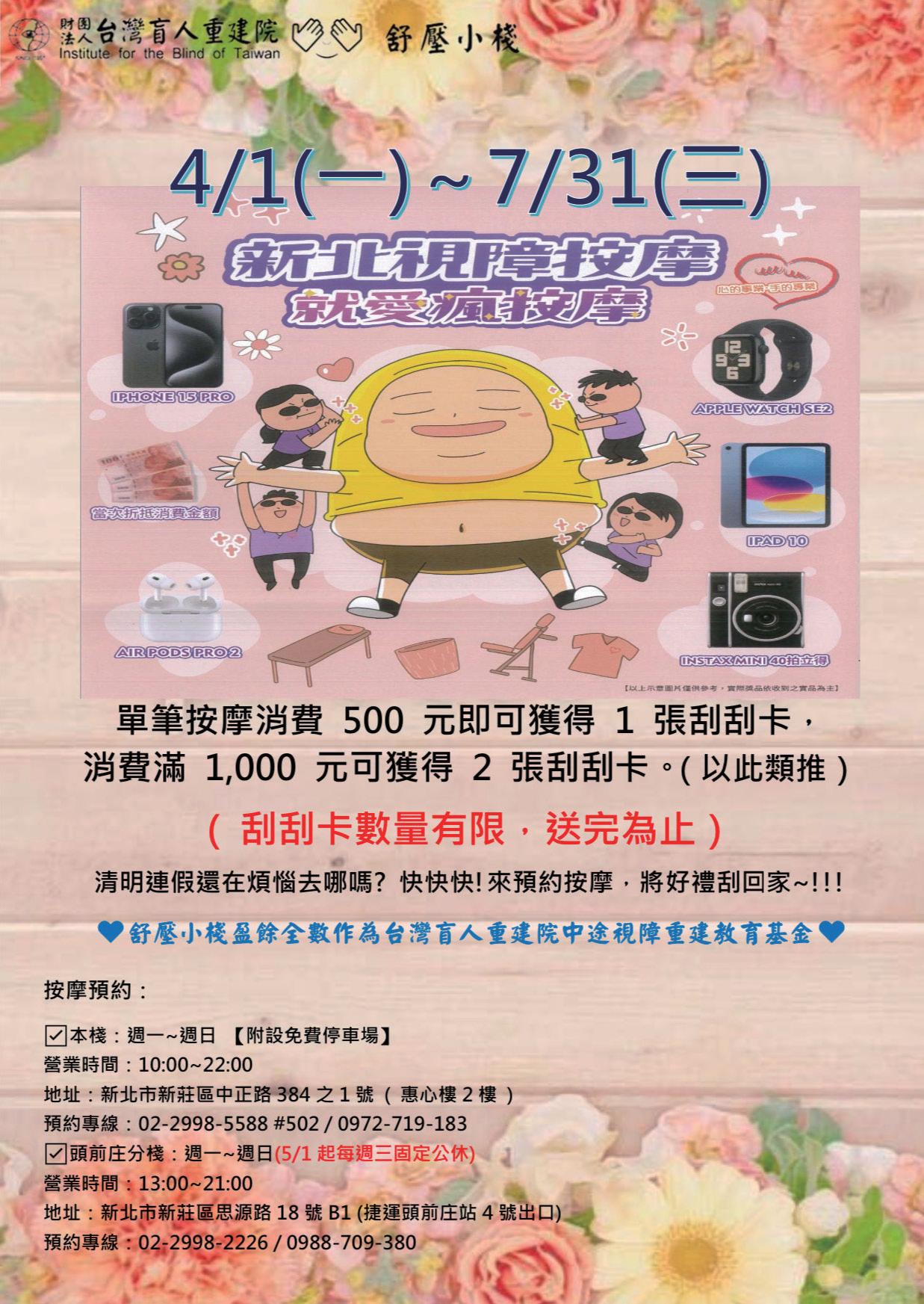 台灣盲人重建院 T : (02)2998-5588 F : (02)2996-3306