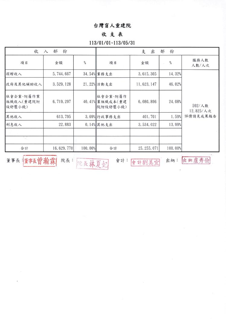 在113年,截至5月底赤字8,625,301元