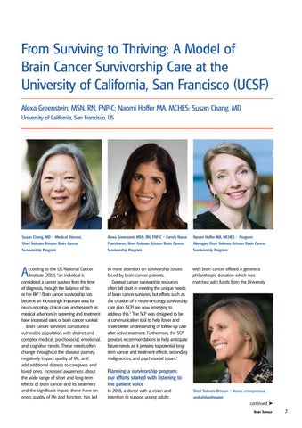 From Surviving to Thriving: A Model of Brain Cancer Survivorship Care at the University of California, San Francisco (UCSF) Alexa Greenstein, MSN, RN, FNP-C; Naomi Hoffer MA, MCHES; Susan Chang, MD University of California, San Francisco, US