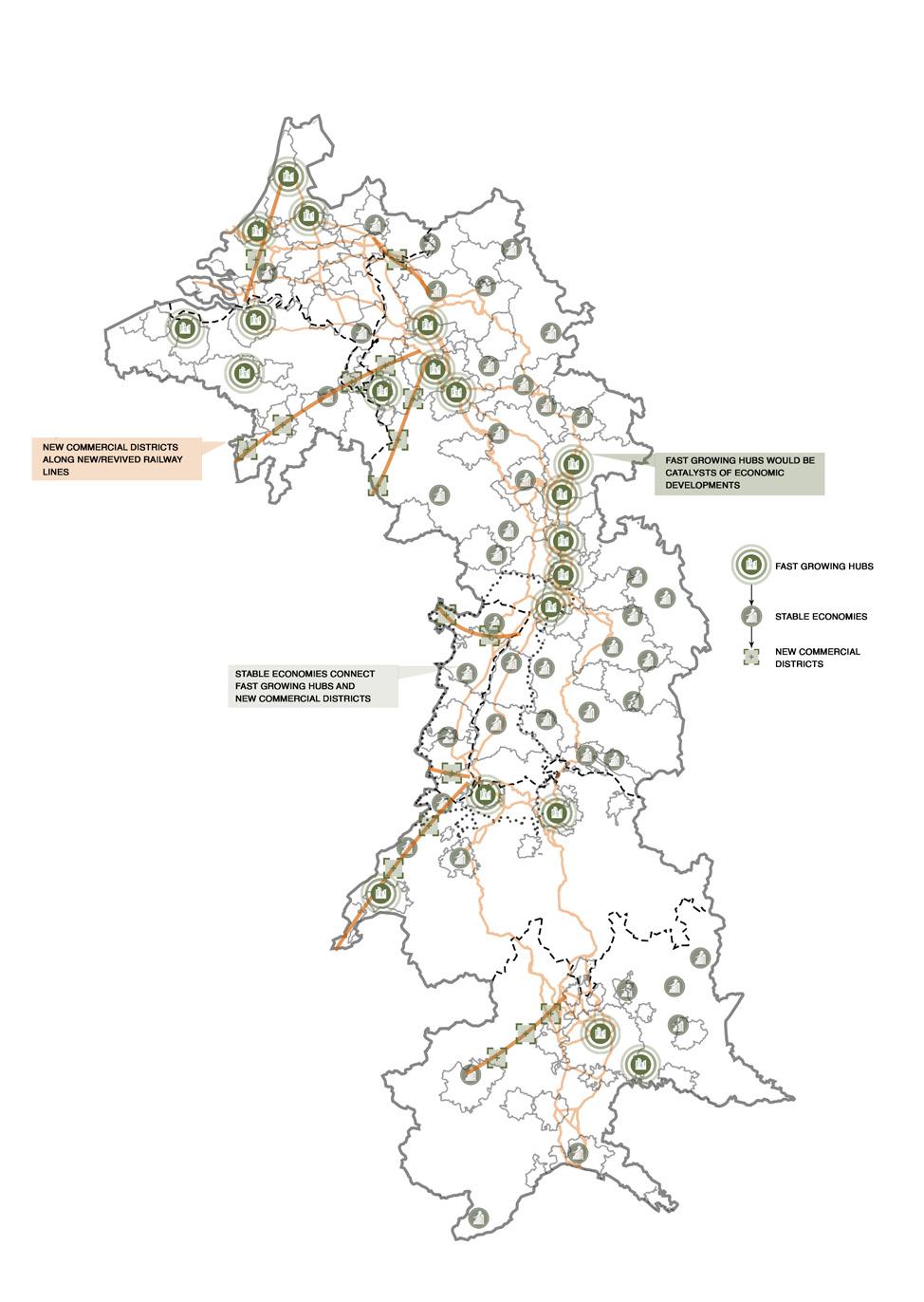 As there are new connections, the rural areas along the train lines are proposed as new commercial districts that would boom in business activities.