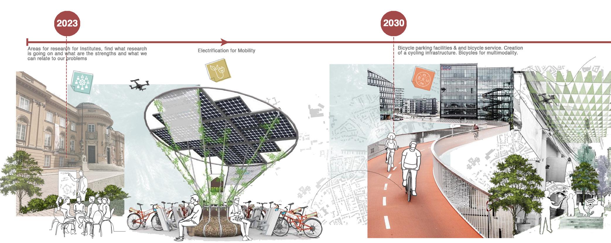 We have prepared a timeline and dedicated short-term, mid-term and long - term goals. Our short term goals include strengthening collaborations between Educational and research institutions and business cooperations, planning conferences and delegations. Providing electrical charging stations for mobility on roads and cycle tracks. This goal aims to be fulfilled by the year 2030.