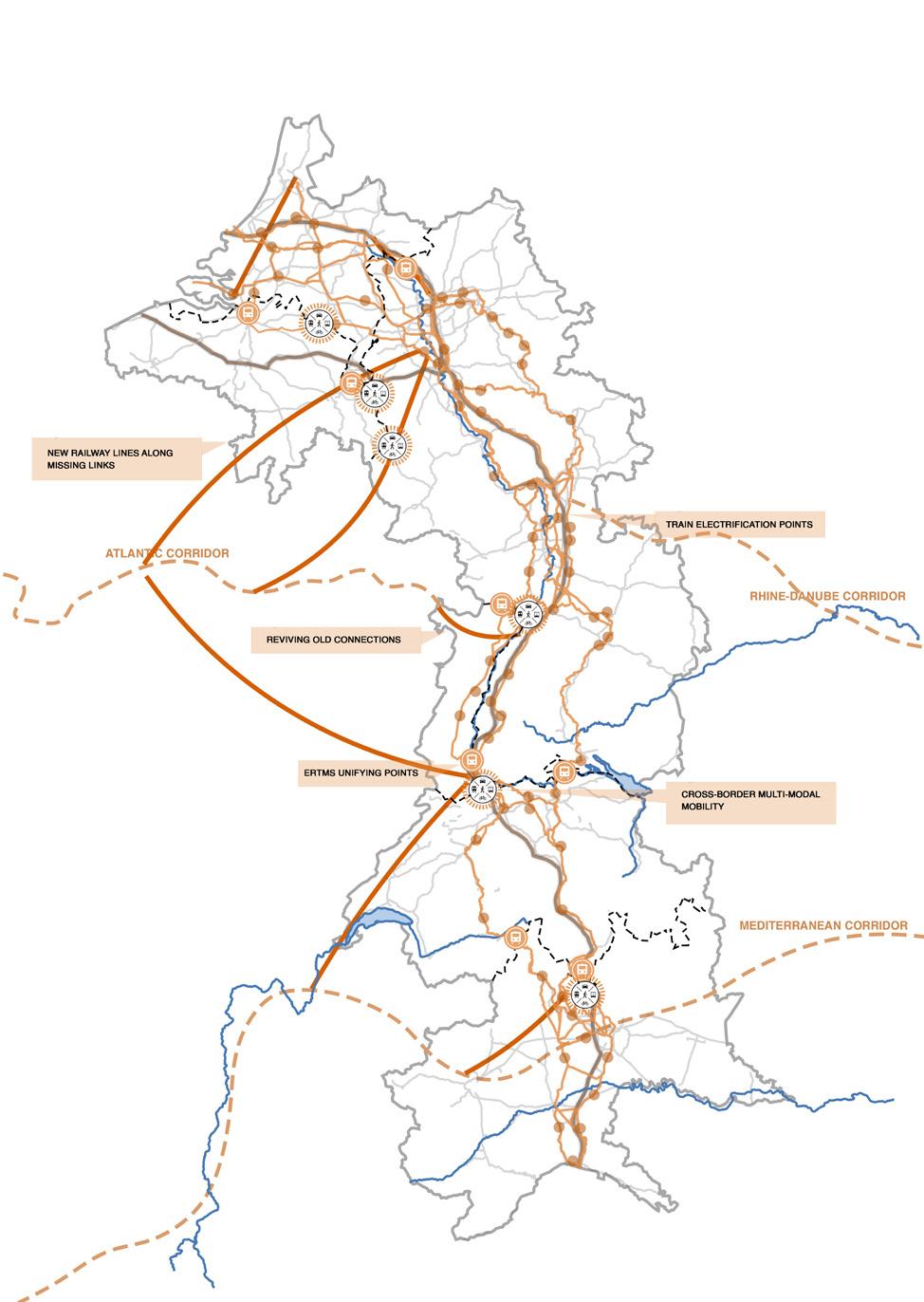 The idea firstly is to create and revive new railway lines where we had missing links, these new connections would connect the other European corridors that run along the Rhine-Alpine Corridor.