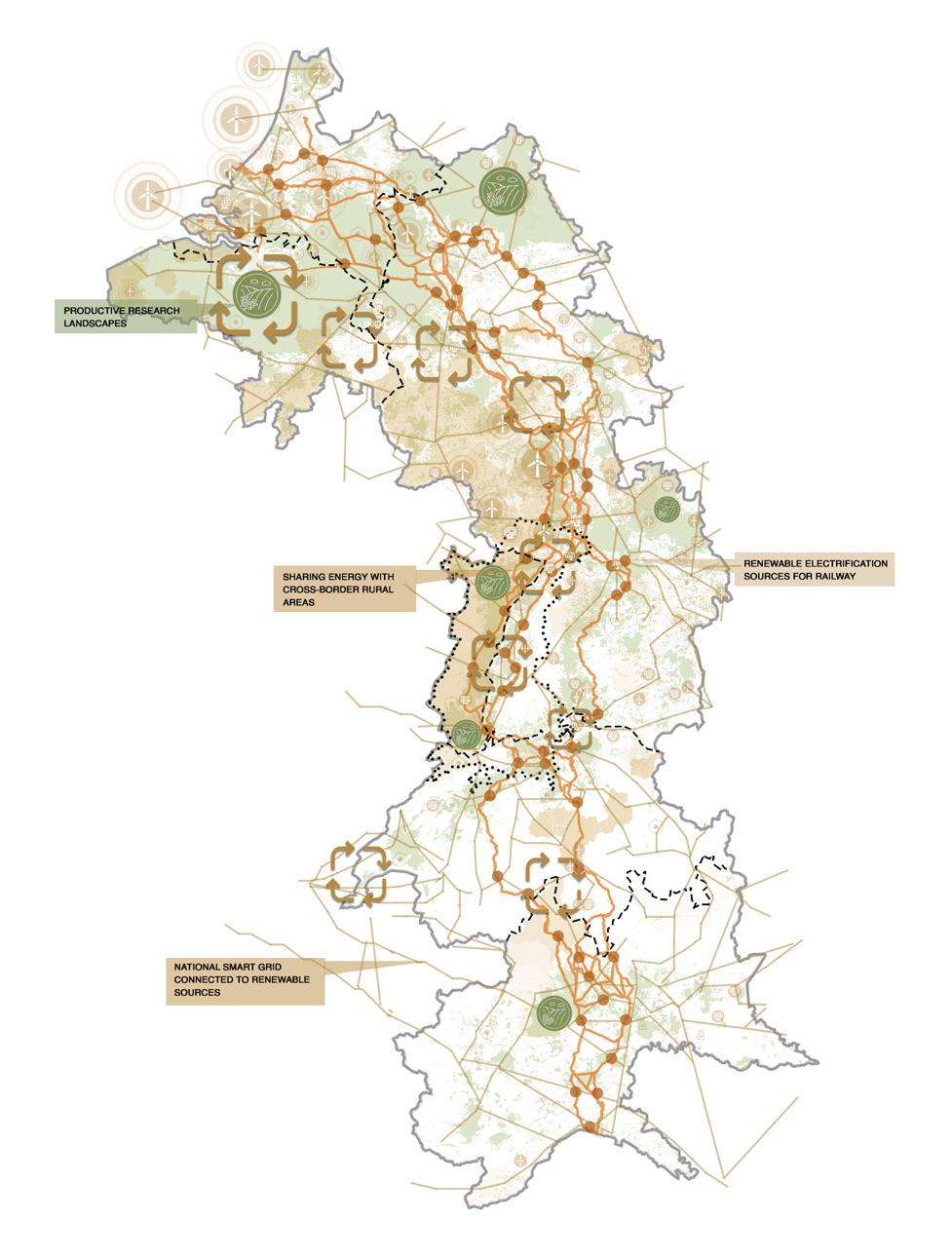 smart grid will be linked with the train lines for electrification of the lines along entire corridor. We propose to phase out the non-renewable power plants with the means of productive landscapes - these will provide biomass and will be integrated with the smart grid for the clean production of energy.