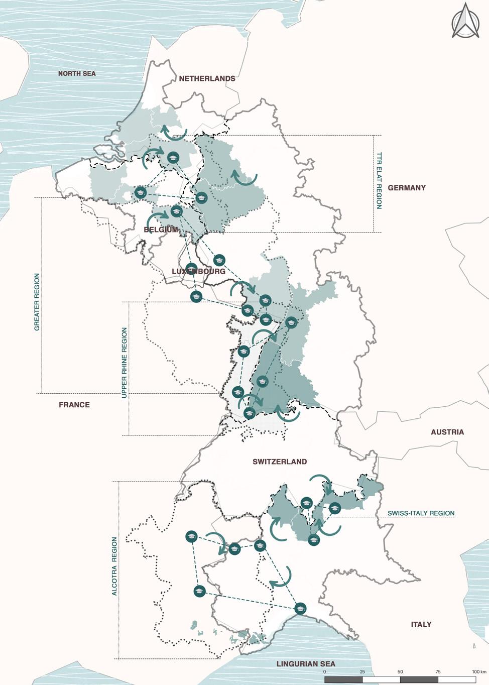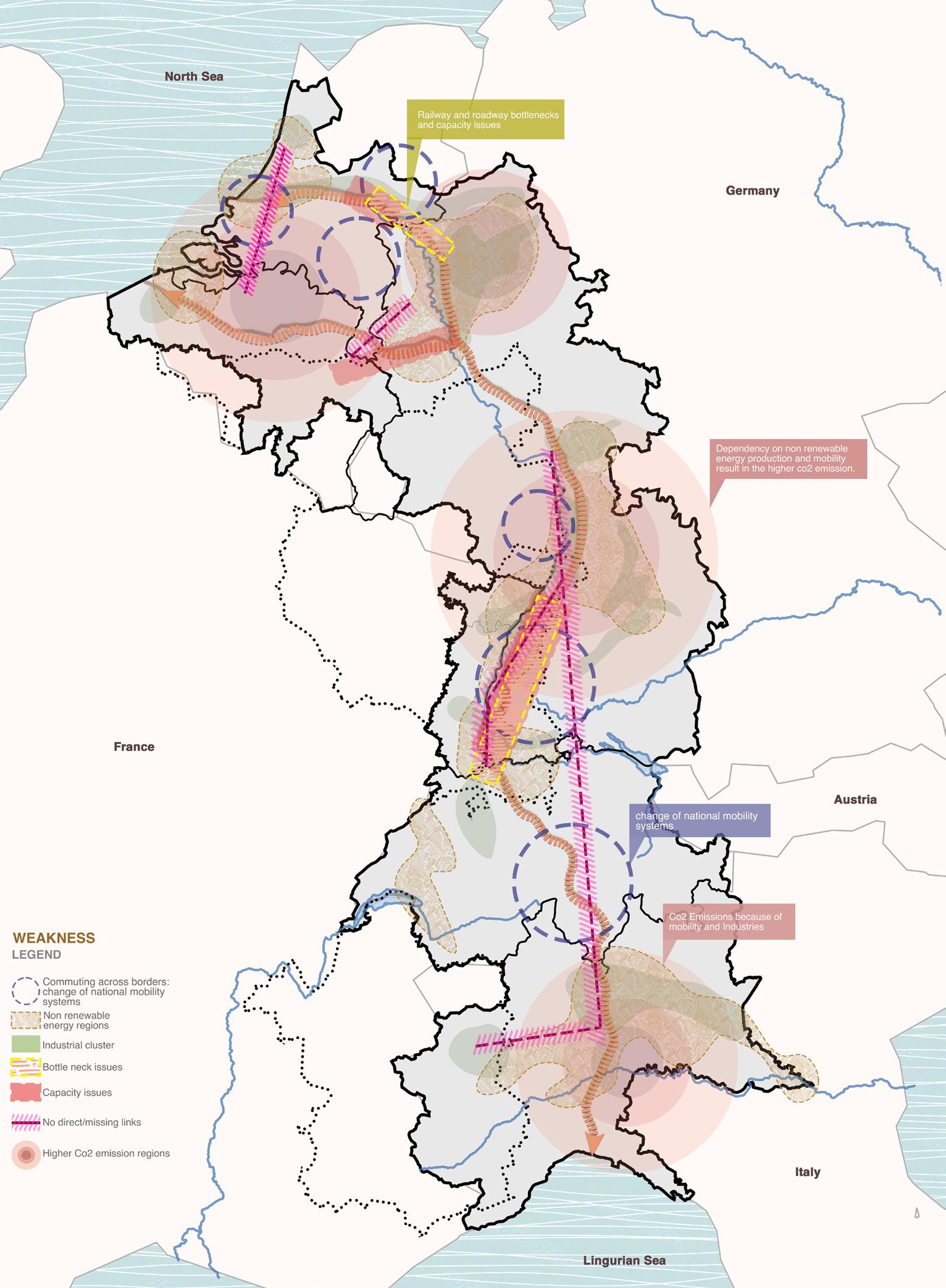 The research/design questions have been formulated on two scales - Rhine-Alpine and PAMINA.
