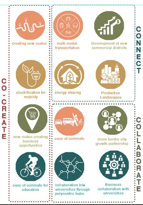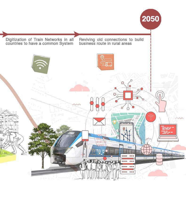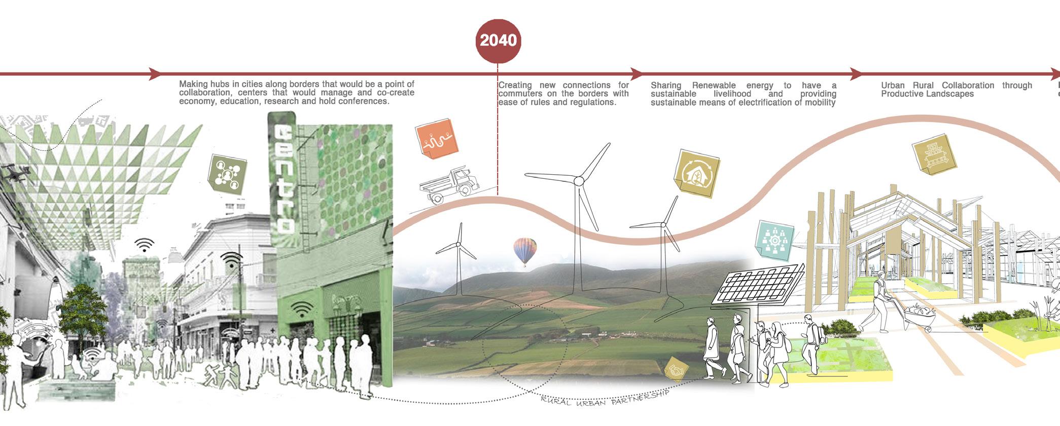 Between 2030-2040, we aim to provide bicycle parking facilities and service. Creation of cycling infrastructure and bicycle as a multimode transportation. Making hubs in cities along the border that would be a point of collaboration, centers that would manage and co-create economy, education, research and hold conferences.