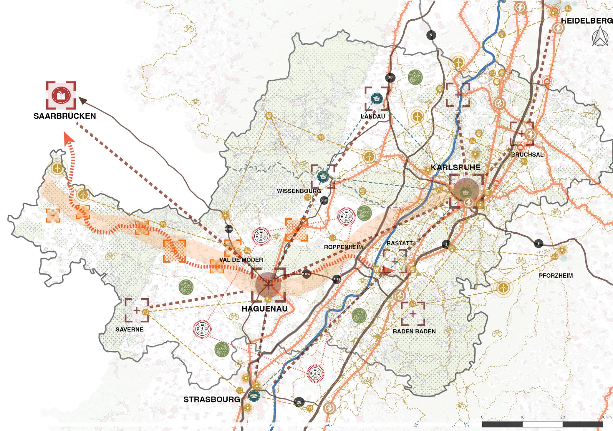 The strategy is to revive the connection of Rastatt, Haguenau and Saarbrucken line and connect it with the Atlantic corridor. This would connect it to the Rhine Danube corridor in turn as well. The North Vosges Regional