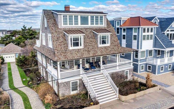 OCEANFRONT GEM! A large, breezy, covered open wraparound front porch overlooking the ocean sets a perfect vacation tone at this spacious 3,000+/- sq ft Dutch Colonial home on an oversized oceanfront lot (50x125)! Sip a coffee or cocktail while gazing at the beach right across the way, or mingle with guests facing unobstructed views of blue sky, sand & the glistening water. The locale is premier and the interior is bright & gracious with lots of possibilities, awaiting your customization. A dining room, eat-in kitchen, family room, 2 BRs, full bath & laundry occupy the 1st level. On the 2nd level sits a big living/dining combo lead ing out to the peaceful porch, a den, master bedroom, 2 guest bedrooms.
