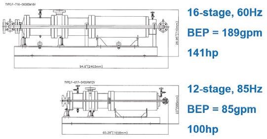 Multistage canned-motor pump size comparison with increased rotational speed.