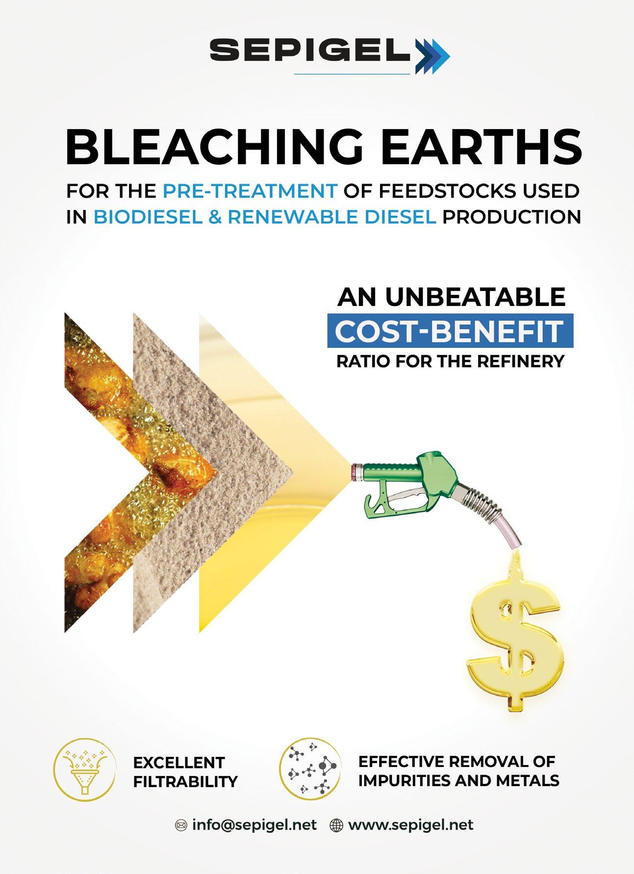Finally, an alternative pretreatment process has been developed for very poor-quality feedstocks like some acid oils, distillation pitches and trap grease. This process mostly consists of fat splitting followed by fatty-acid distillation. The process is very efficient at treating feedstocks with extremely high loads of contaminants, but often has lower yields then a classic pretreatment process and has much higher capex and opex costs. Its application has, until now, been limited to lowcapacity plants with difficult feedstocks.