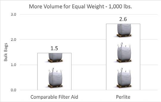 The unique structure of perlite makes for a very light weight with 30 percent to 50 percent less bulk density compared to other filter aids. Therefore, users typically require 30 percent to 50 percent less additive. The high void volume and porosity of perlite form a thick, permeable filter cake improving permeability and flux rates.