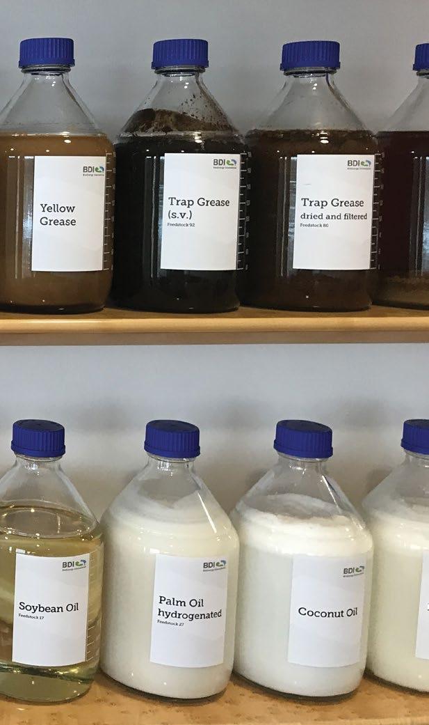 PHOTO: BDI-BIOENERGY INTERNATIONALThe next parameter specified in market newsletters is MIU. The acronym stands for three of the principal qualitycontrol tests used to determine common contaminants in waste oils: moisture and volatiles, insoluble impurities, and unsaponifiable matter. For “good” UCO, the typical maximum value is 3 mass%. The more interesting part, however, is the ratio between these three components. Whether the water portion is 0.2 mass% or 2 mass%, for example, can determine if the raw material is suitable as feedstock for biodiesel or renewable diesel production. Therefore, this parameter also must be scrutinized more closely.