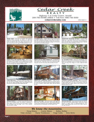 Highway 4 at Cedar Center, Arnold 209-795-HOME (4663) ✧ Toll Free: 866-746-5050 DRE# 00843113 cedarcreekrealty.com