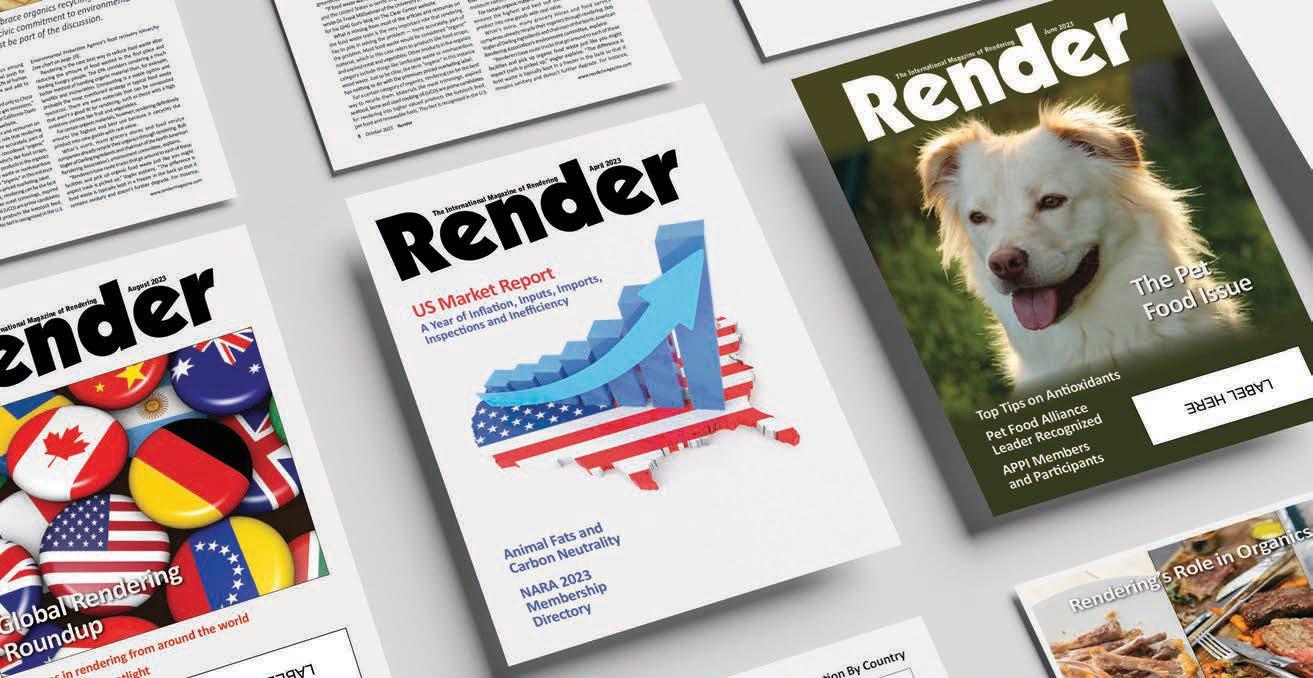 Render (ISSN 0090-8932) is published bimonthly under the auspices of the North American Renderers Association by Clear Point Communications as a public service to the North American and global rendering industry. It is intended to provide a vehicle for the exchange of ideas and information pertaining to the rendering and associated industries. Render is distributed free of charge to qualified individuals upon written request. Publisher reserves the right to determine qualification. Periodical postage paid for at Benbrook, TX, and additional mailing offices.