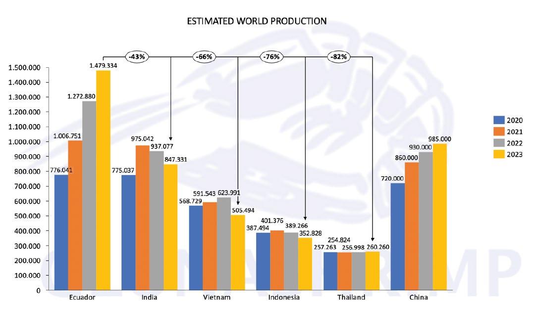 Over the past decade, Ecuador’s shrimp production has experienced consistent double-digit annual growth, with figures steadily climbing from 2013 to 2023. However, this trend created a global supply surplus and price decline. In 2024, for the first time in a decade, Ecuador’s shrimp production is showing signs of contraction, with a notable 10% decrease reported in both production and exports by the end of February.